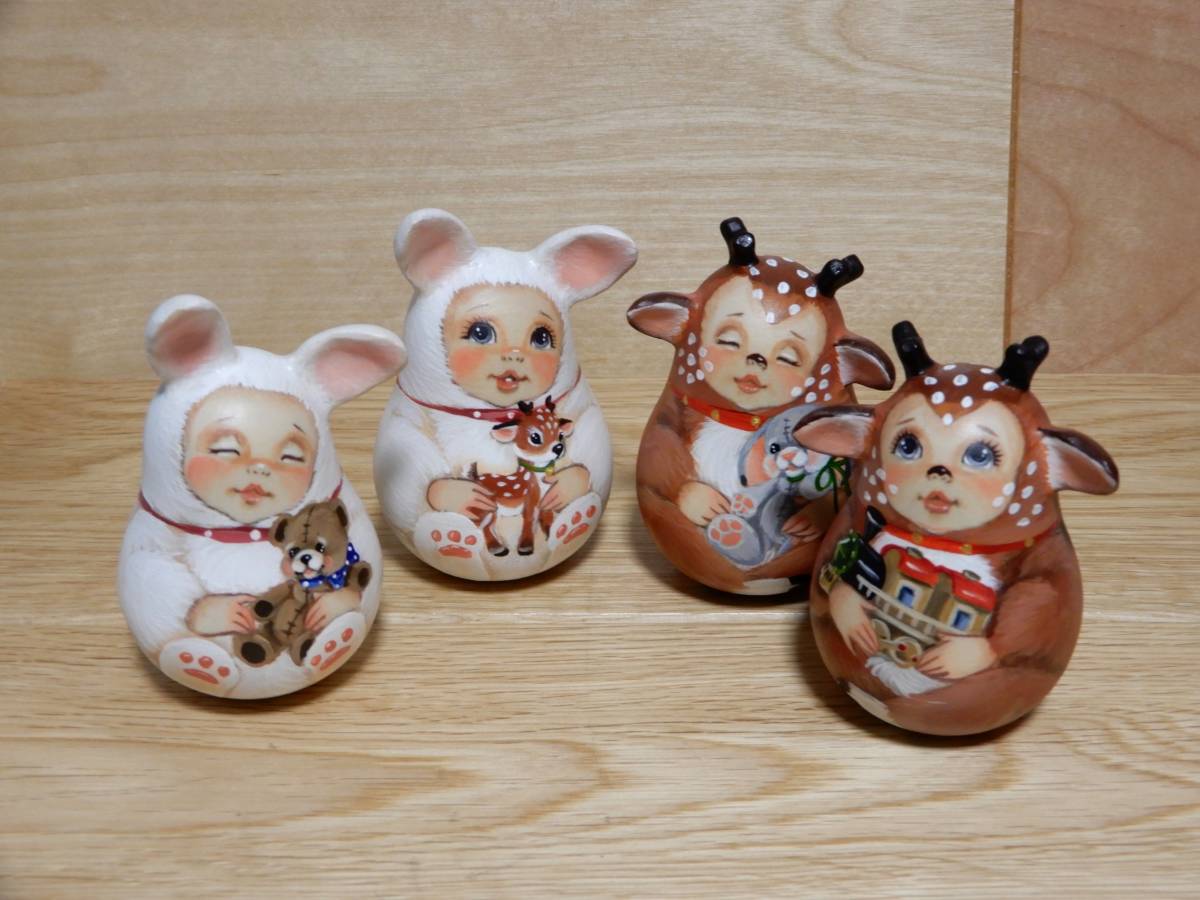 ★スヴェトラーナ・ニコラエヴァ おきあがりこぼし 着ぐるみキッズ【鹿とクマ】作家もの matryoshka nesting dolls roly poly