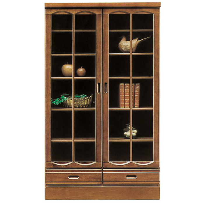 本棚 書棚 リビングボード ガラス扉 幅90cm 完成品 和風モダン 国産 収納家具 ●ブラウン
