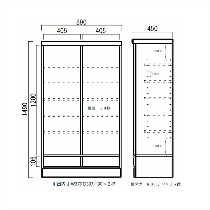 商品サイズ本体:幅89cm×奥行45cm×高さ149cm