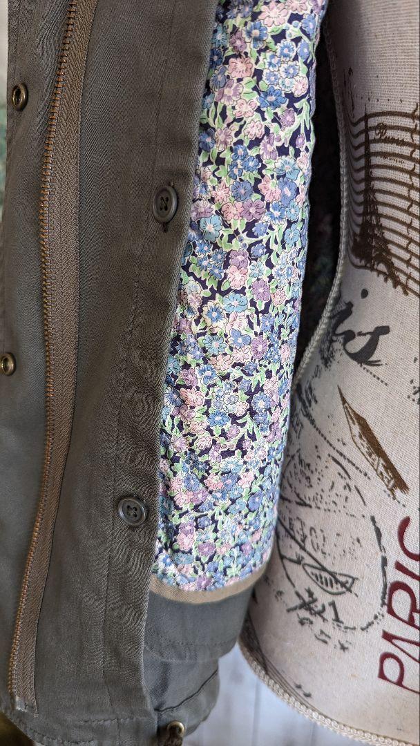 SHIPS(シップス)の花柄ライナー付、ショート丈ミリタリーモッズコート、ジャケット。