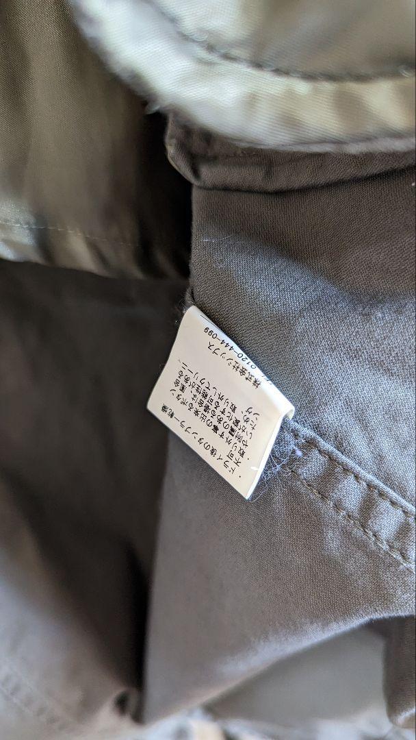 前ファスナー+スナップボタン留め。左の内側に袖口の大きなボタンの予備が縫い付けられています。