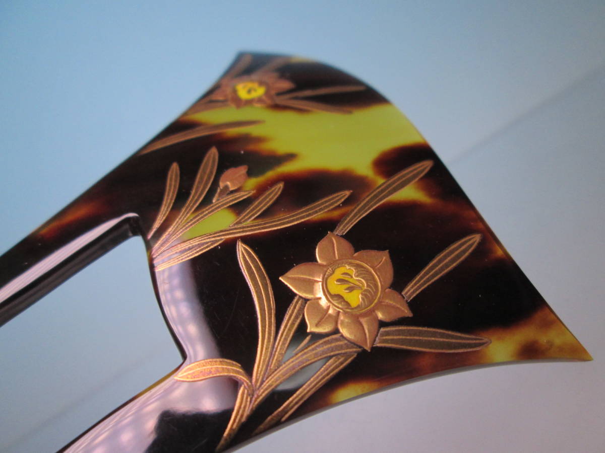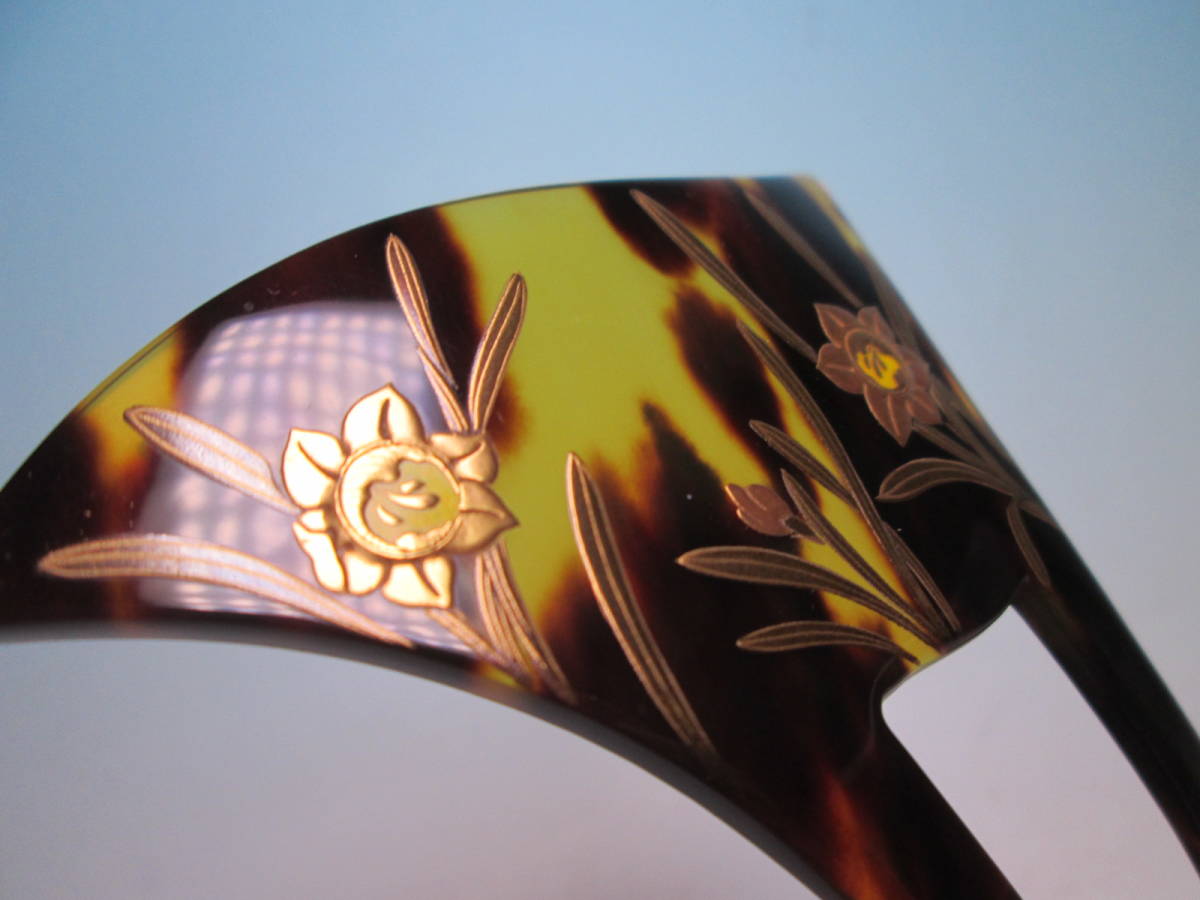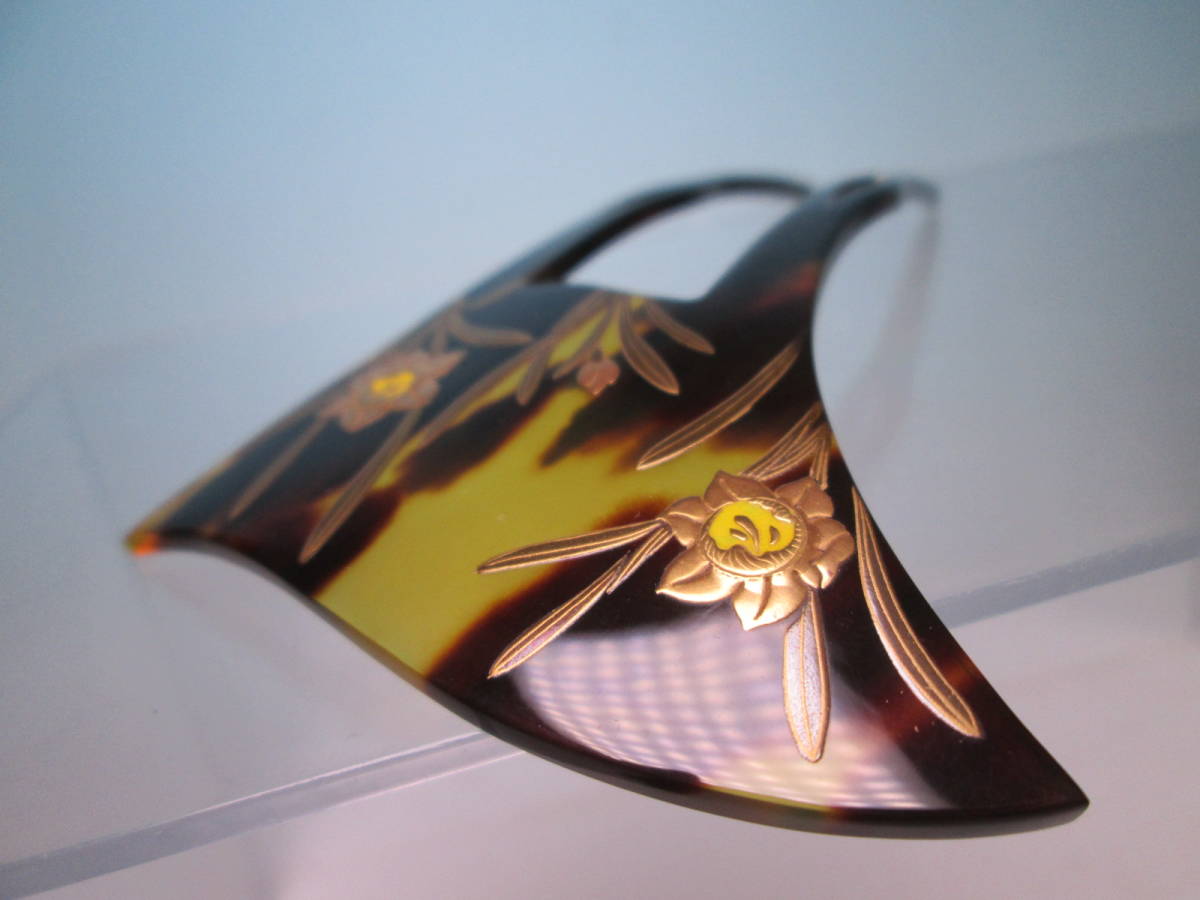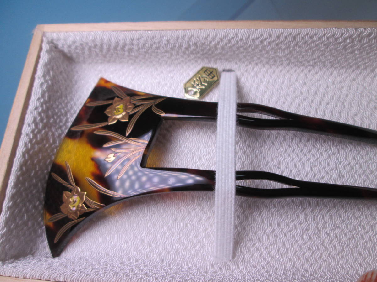 【江月】在銘 本鼈甲 水仙の花 螺鈿細工金蒔絵のかんざし 木箱付