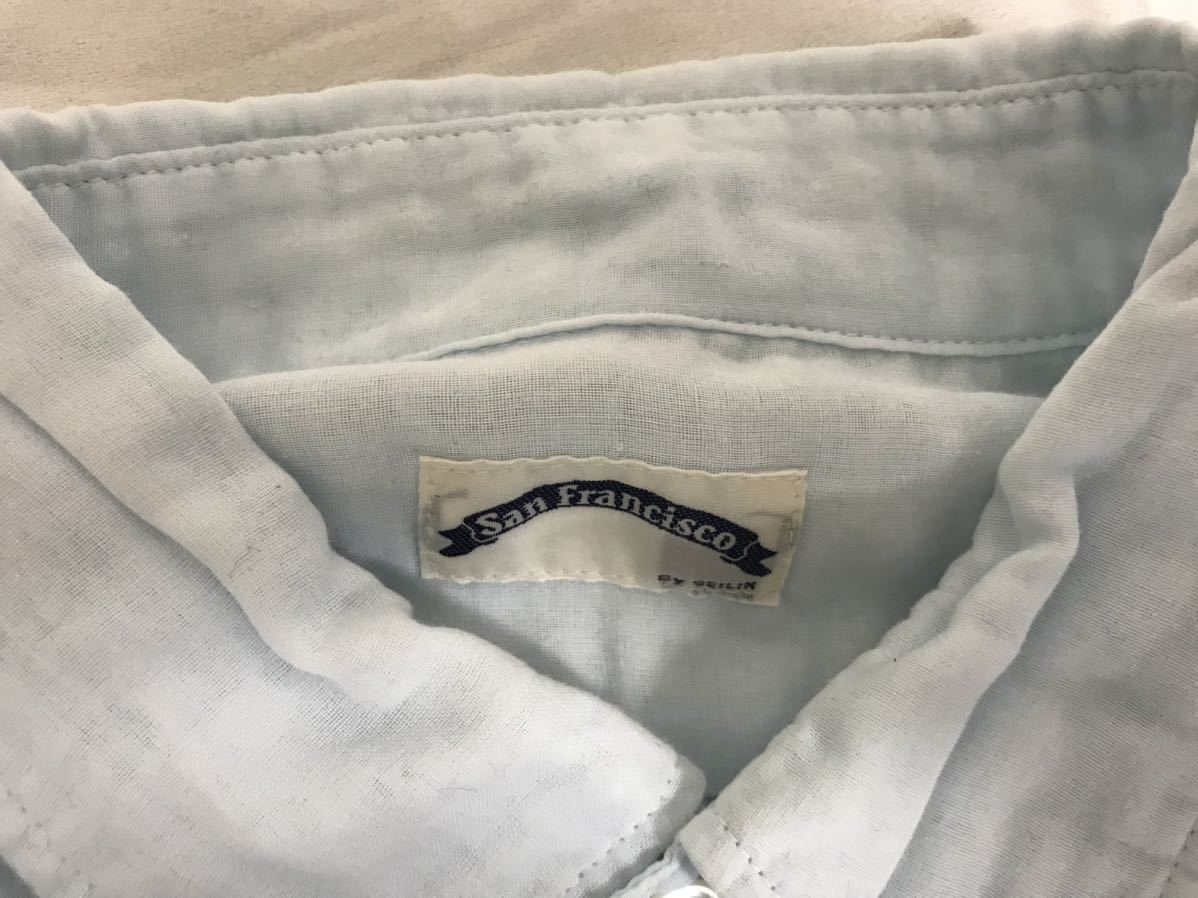 商品名:本物サンフランシスコSanFranciscoコットンガーゼ長袖シャツジャケットメンズサーフアメカジミリタリービジネススーツ青ブルー日本製M