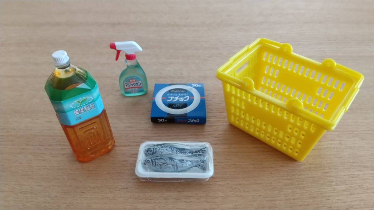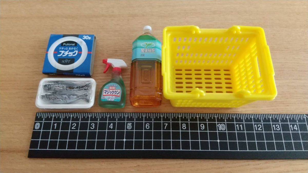 【リーメント】ぷちサンプルシリーズ ぷちスーパー(本日の特売品)蛍光灯 電気 お茶 ペットボトル 魚 鯵 洗剤 買い物かご ミニチュア