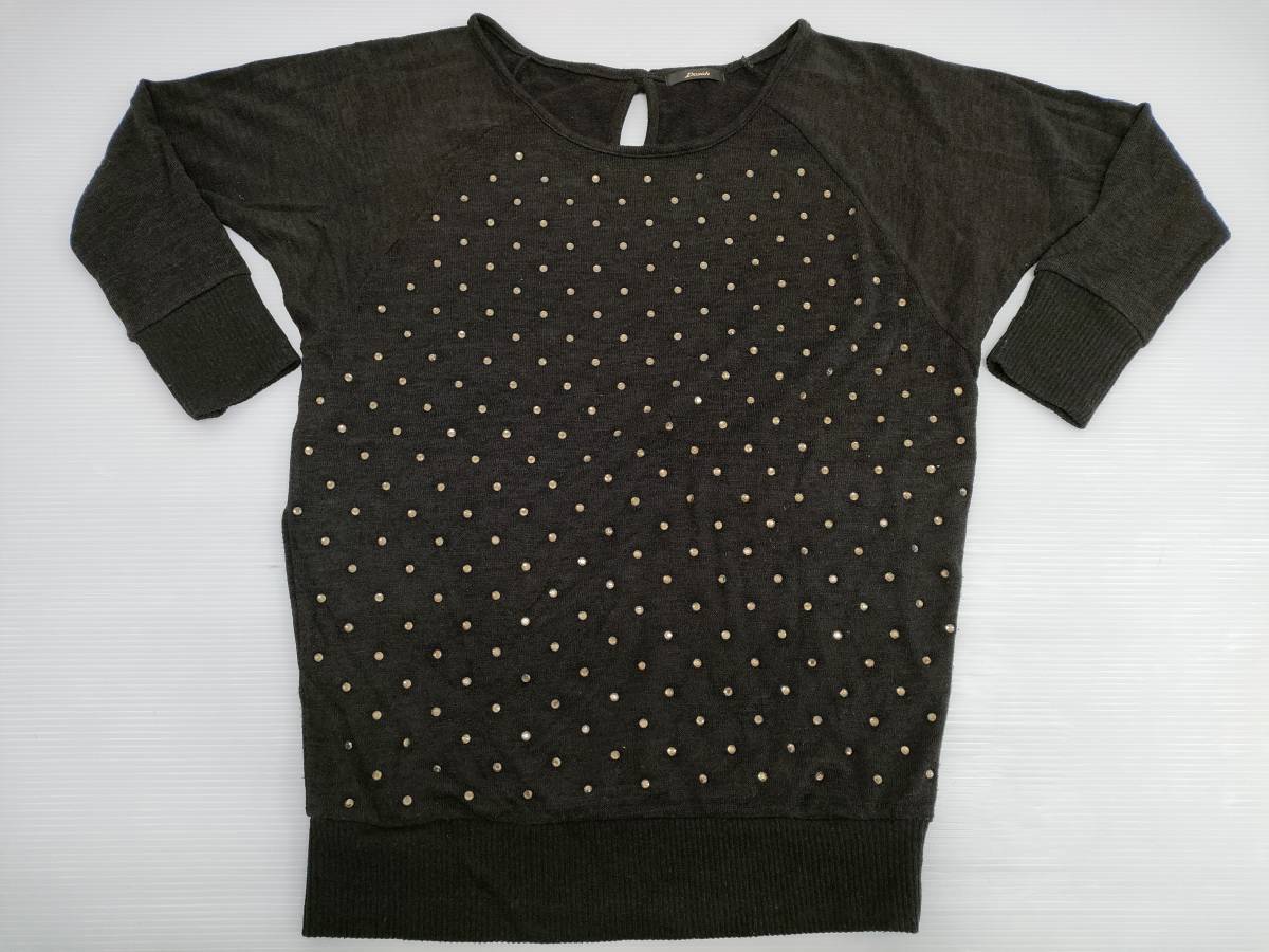「DOSCH/ドスチ」のトップス レディース ドルマンスリーブ カットソー 長袖 背中開き ラインストーン ブラック サイズLです。