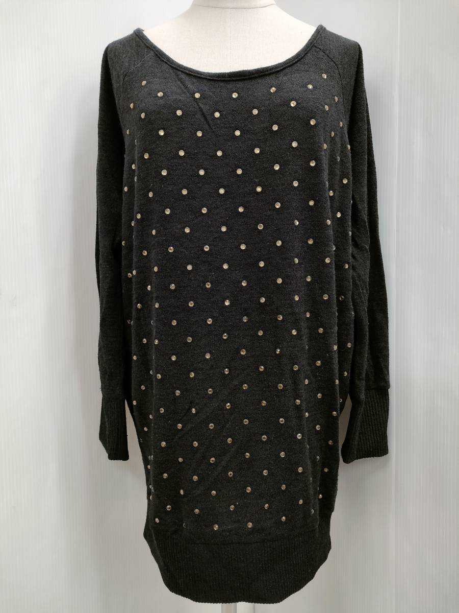 DOSCH/ドスチ トップス レディース ドルマンスリーブ カットソー 長袖 背中開き ラインストーン ブラック サイズL
