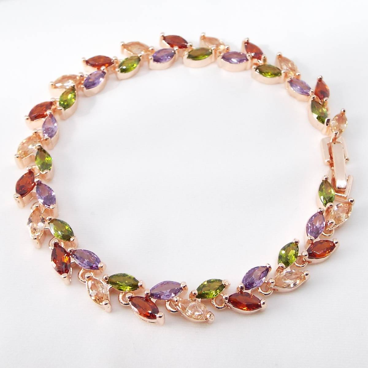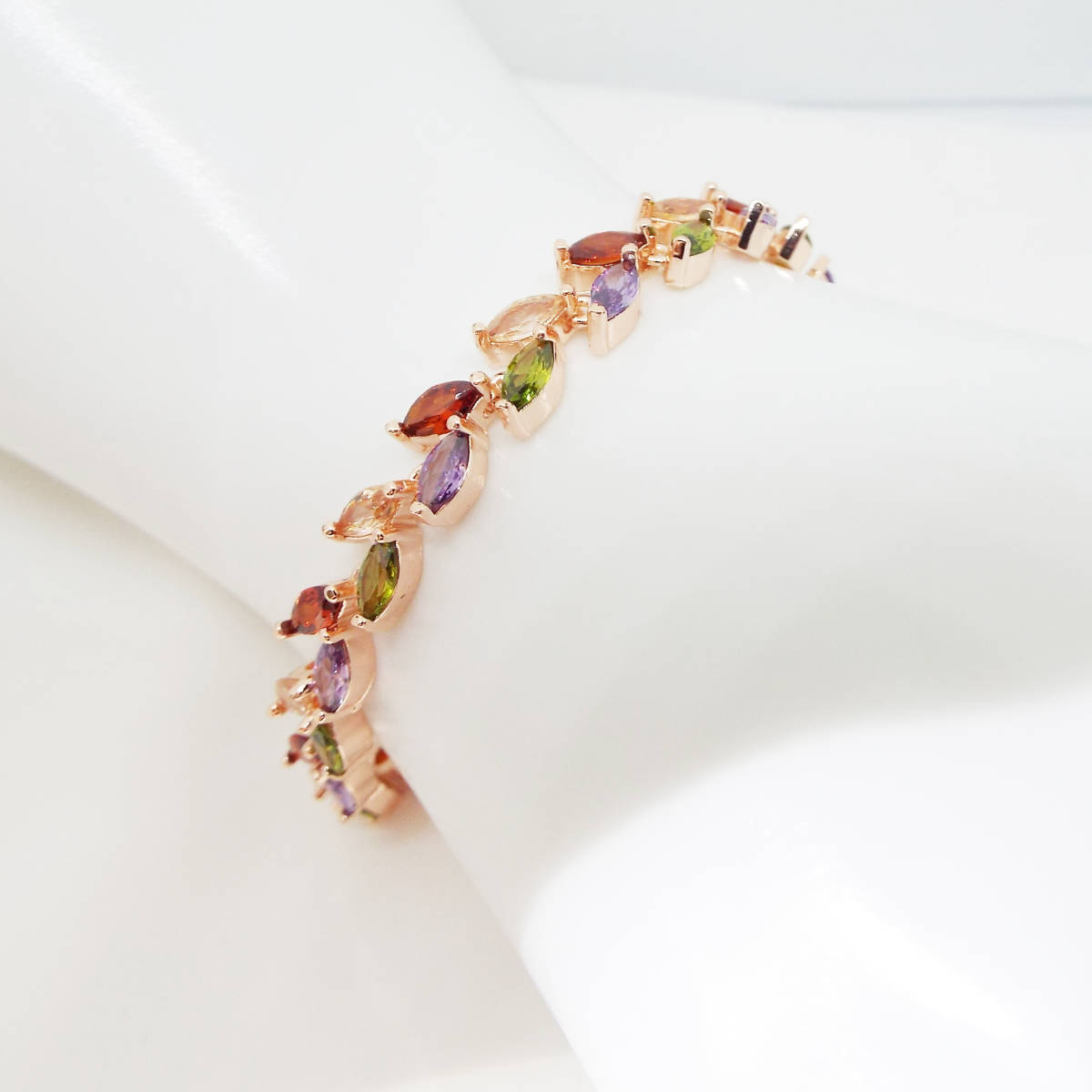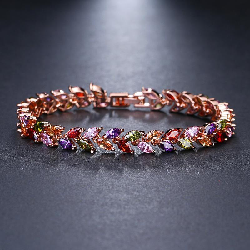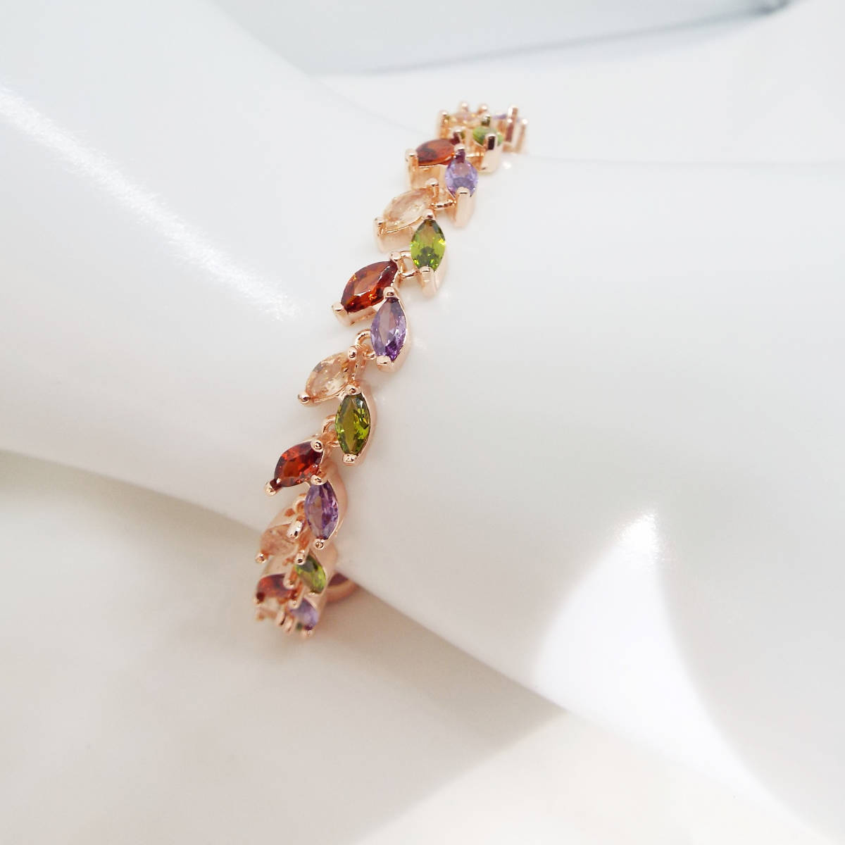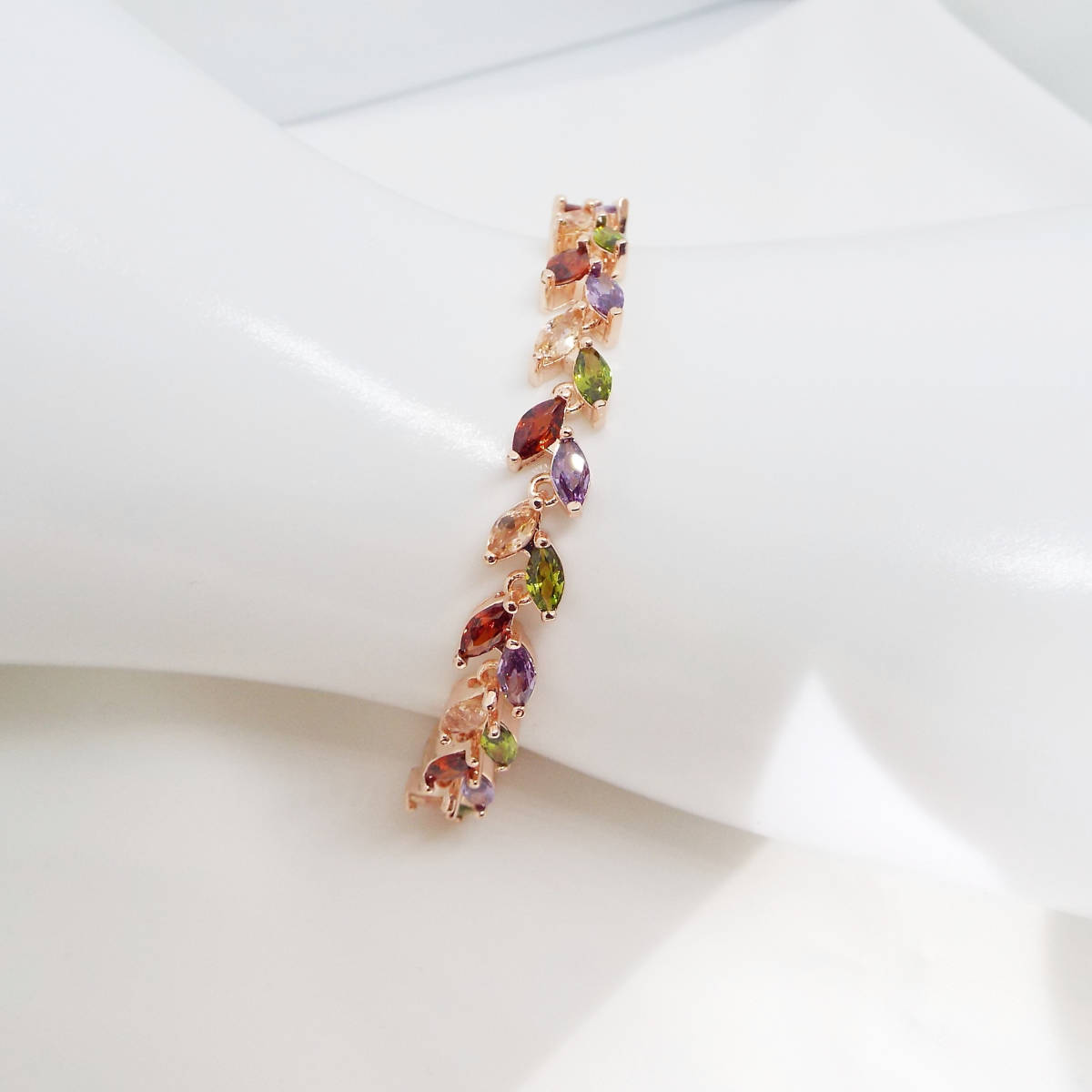 プラチナコート CZダイヤ リーフ ブレスレット レディース マルチカラー 送料無料 匿名配送