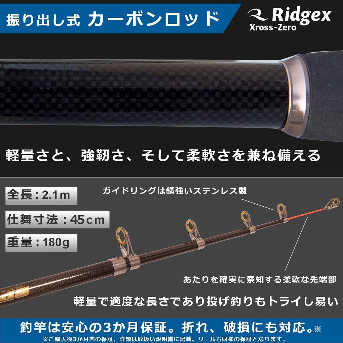 ・釣り竿は伸縮式で伸ばせば2.1mにまでなります。