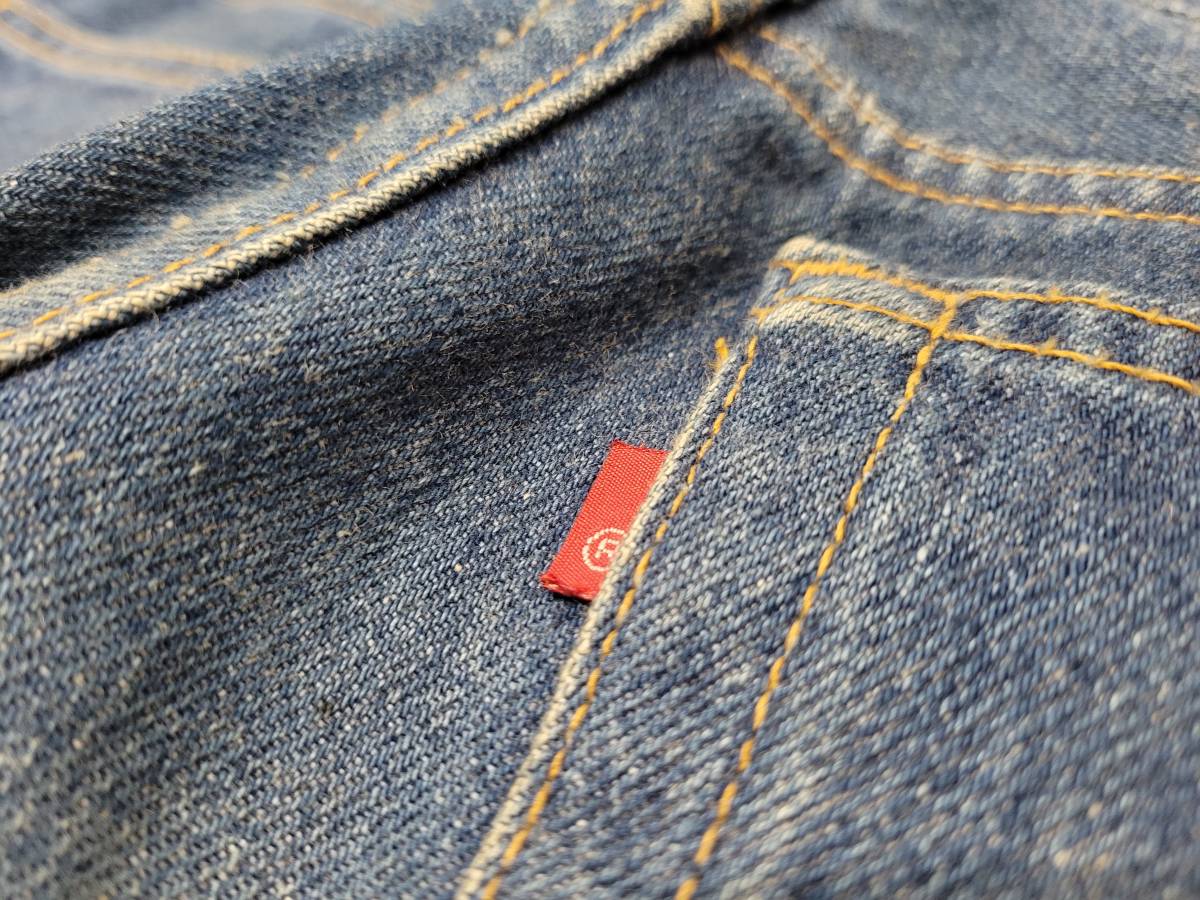 程よい色残りで色落ちの良い一着です、トップボタン裏552で、脇割りロック白で裾シングルです。
