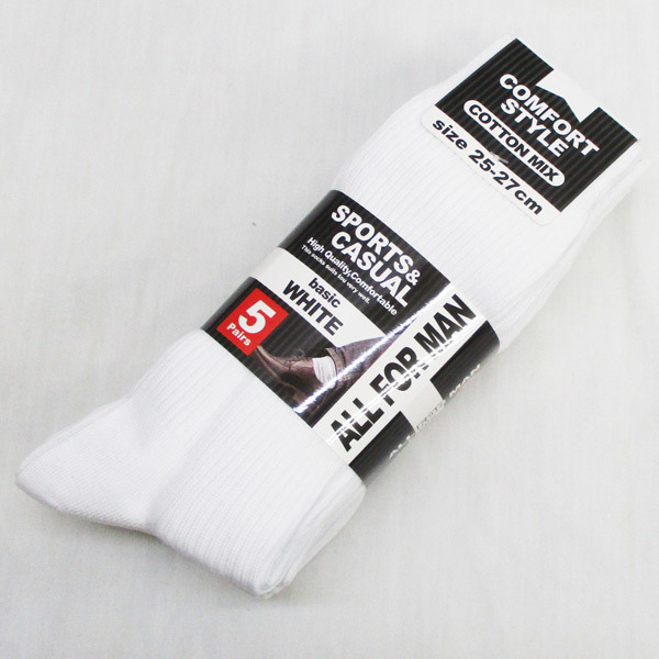 | 情報 | 通勤に通学にスポーツに すべての男性に! High Quality Comfortable 白色メンズソックス オール フォー メン フォー スポーツ&カジュアル 通勤に通学にスポーツに すべての男性に! ▼使いやすい白色です。 ▼サイズ 25cm~27cm(多少の前後は大丈夫です) ▼スポーツやビジネスソックスとしてもご利用いただけます。 ■ 商品名 ALL FOR MAN for SPORT CASUAL ■ 足数 タイトル参照 ■ カラー ホワイト ■ サイズ 25~27cm ■ 品質表示 ポリエステル・綿・ポリウレタン