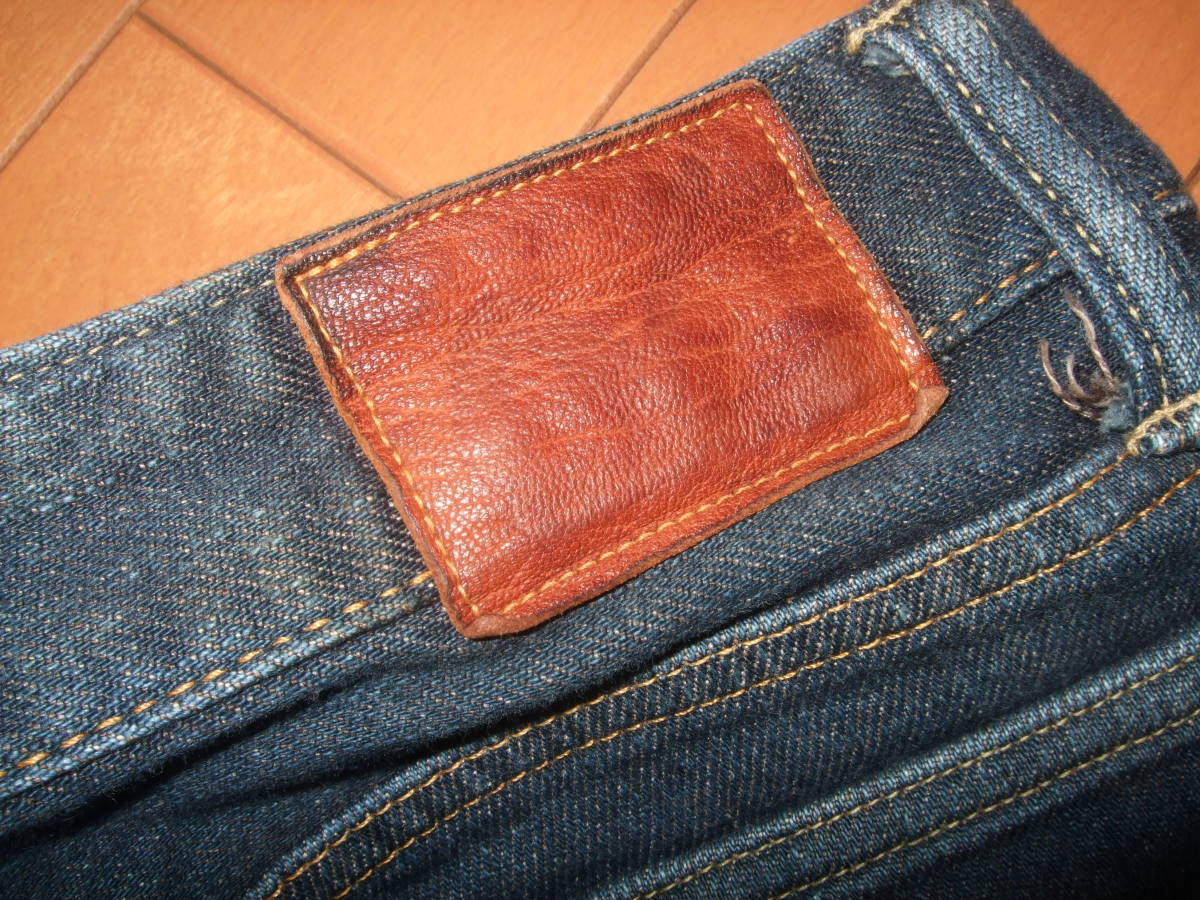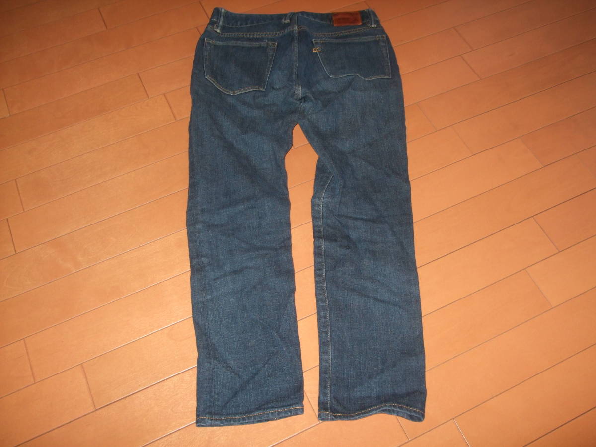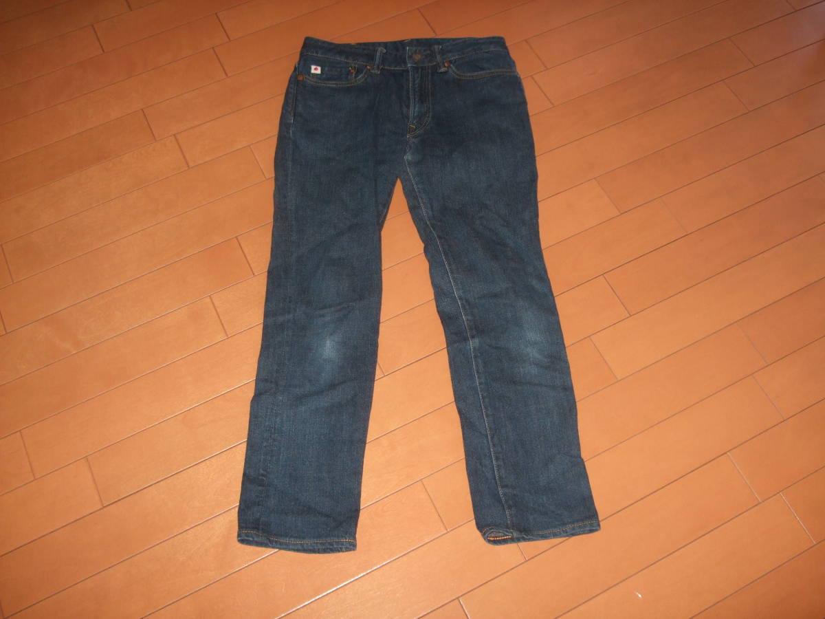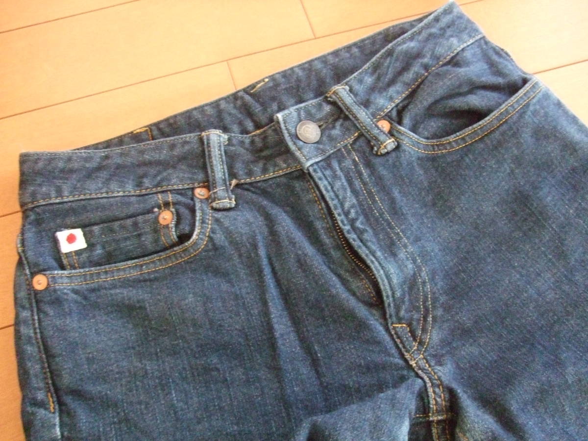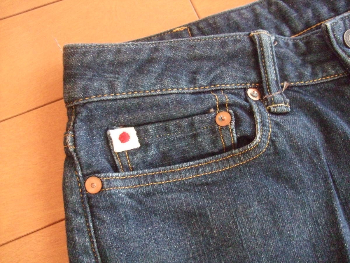 使用状況:ユーズド品、膝あたりの色あせによる白み、全体的なユーズド感はありますが、目立ったダメージはありません。後ろの革ラベルのRの字は消えかかっていますが、ポケットの刺繍R、日の丸刺繍が素敵です。ストレートからスリムのような感じの形ですが、フォルムが綺麗で、さすが、という感じです。