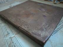 とても素敵な銅製葉巻ケースです。手作りの銅工アラベスク模様の彫ございます。しっとりとしたお色に変色しております。どっしりと重厚な銅製ケースです。サイズが合えば何を入れてもいいですね。佐川急便もしくはレターパック520円でお送りできます。横14、3センチ縦13,2センチ×厚み1,5センチ中高さ1,2センチです。* 細かな傷くすみ汚れ傷緑錆ございます。アンティークにご理解のある方宜しくお願い致します。返品できませんので十分にご理解のある方ご入札ください。no2235