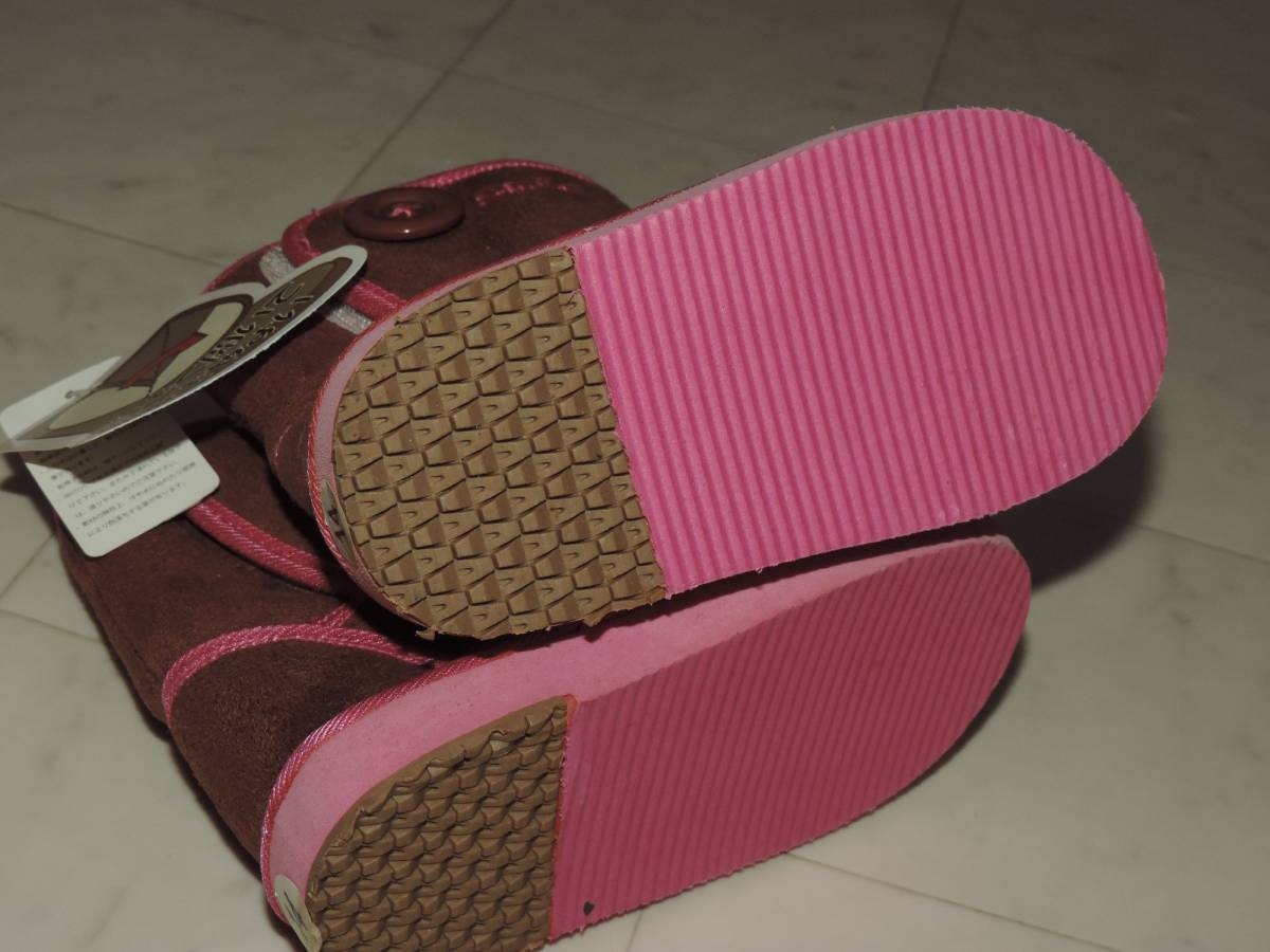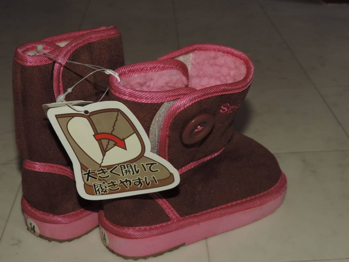 ☆未使用☆内側ボアのあったかスエード風ピンク×茶色のブーツ☆14センチ☆