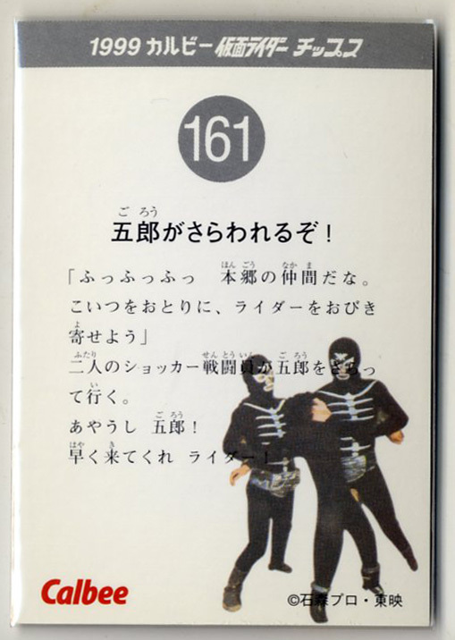 | ◆防水対策 厚紙補強 カルビー 仮面ライダーチップスカード(1999 復刻版) 161番 五郎がさらわれずぞ! トレカ 即決 | |