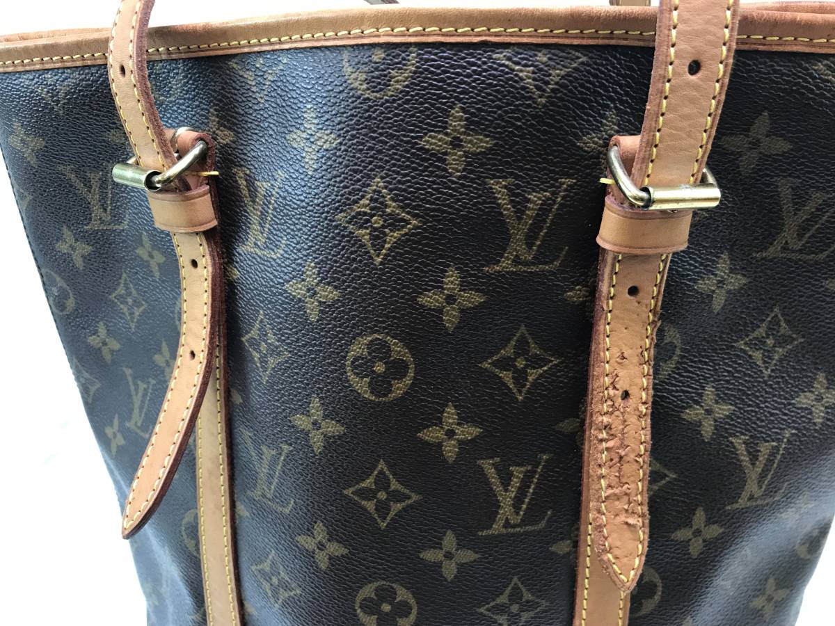 -------------------------------------------------------------------------------------------- ご入札前に必ず下記の発送詳細・注意事項をお読みになり、お客様がご十分にご納得された上でのご入札、ノークレーム・ノーリターンでお願い致します。 緊急なこともコメントしますので自己紹介欄も必ずご確認下さい。 (ご入札された時点で同意されたとみなします) 質問・疑問等がございます方は予め質問欄にてお問い合わせください。 ご質問にはなるべくお答えするようにしておりますが、出来ない時もございます。その際はご了承下さいませ。 ------------------------------------------------------------------------------------------------ ブランド:LOUIS VUITTON/ルイ ヴィトン 商品名:☆【LOUIS VUITTON】 ルイヴィトン モノグラム バケットGM M42236 バケツ型 ♯163248-24 型番:M42236 シリアル:FL1004 商品名:バケットGM 素材:モノグラム キャンバス サイズ:約W27×H35×D20cm 仕様:ファスナーポケット×1、オープンポケット×1 状態:中古品 シミ、多少の汚れ、上部分ホツレ等、多少ございます。(画像参照) 内側部分ベタ付きは特に感じられません。(個人主観になります) 付属はございません。 商品管理番号:163248-24 ※付属品等は、画像にてご確認ください。 画像の物が全てです。 | ||