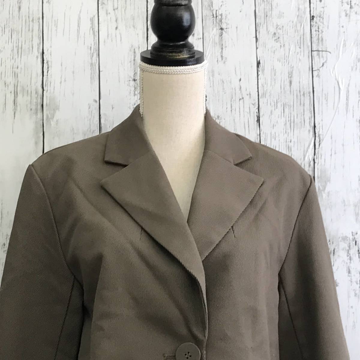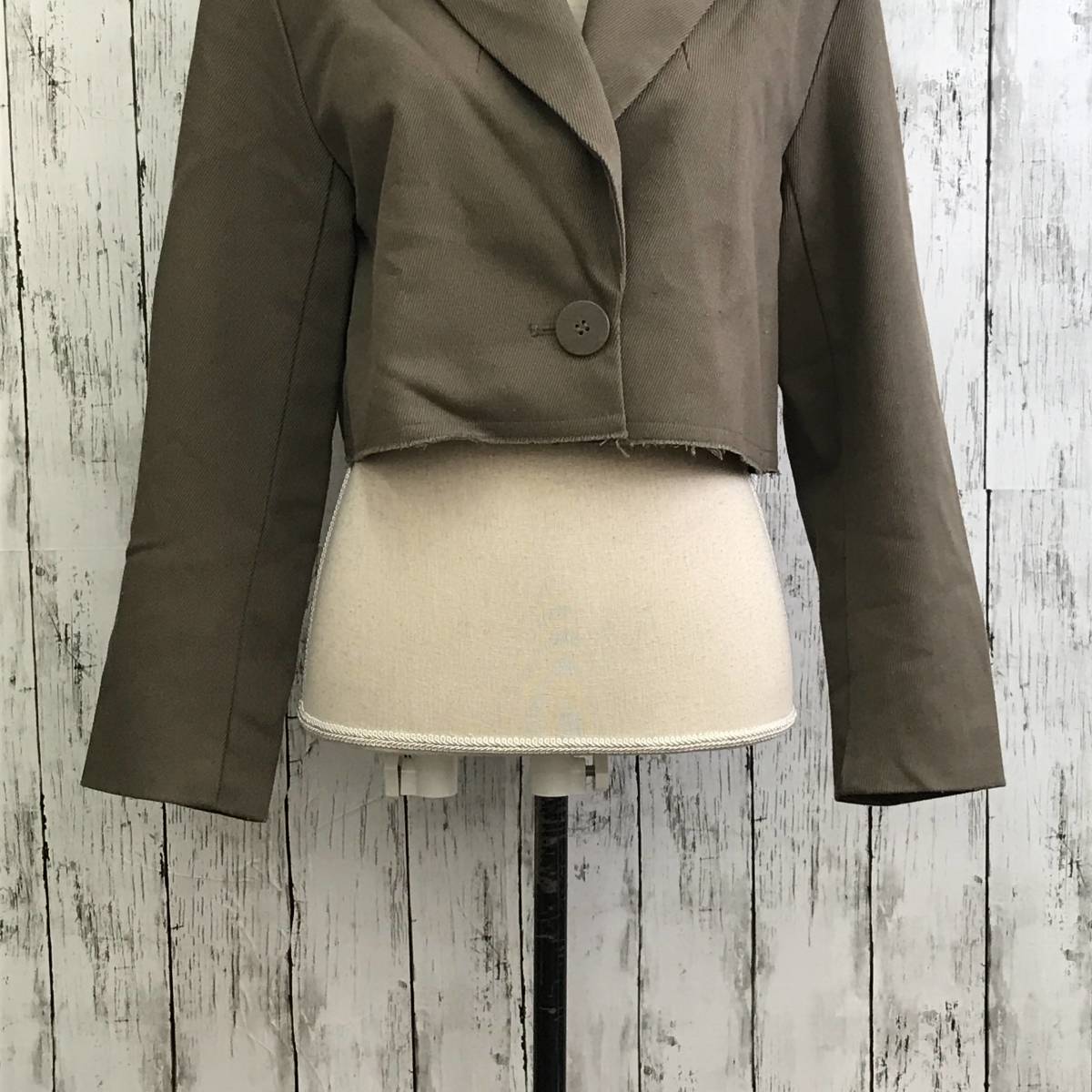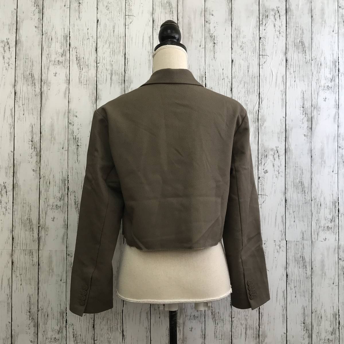 | 商品説明 | 商品名/ショートカルゼジャケット サイズ/F 着丈48cm 身幅48cm 肩幅42cm 袖丈57cm 素材/表地:ポリエステル85% レーヨン14% ポリウレタン1% 裏地:ポリエステル100% 商品状態/傷や汚れあり(前下・袖毛玉あり) |