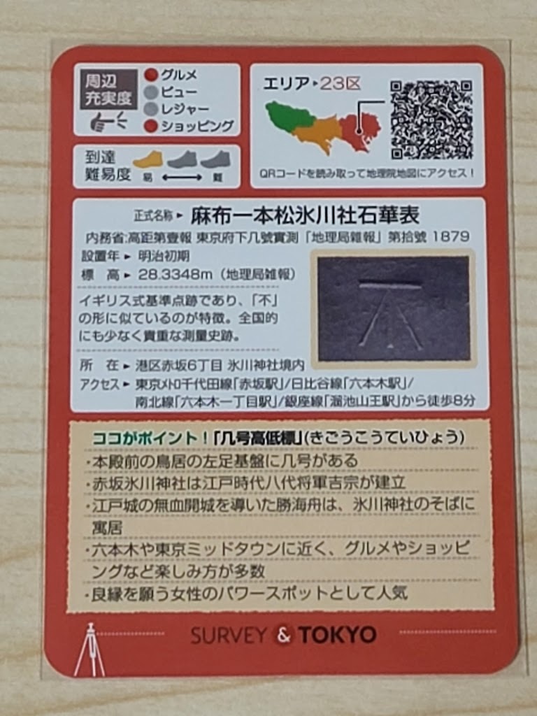 基準点カード 50枚限定レア 赤坂氷川神社 測量 六本木 徳川吉宗 勝海舟 港区