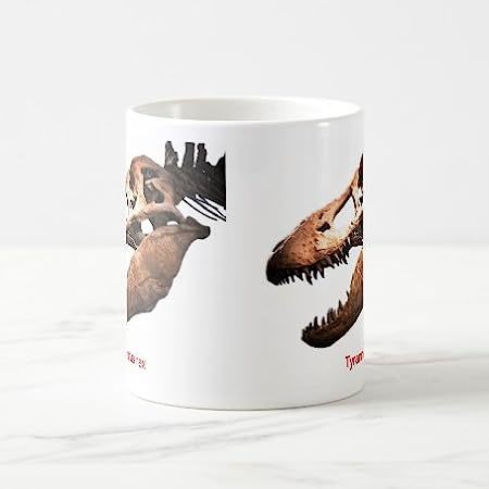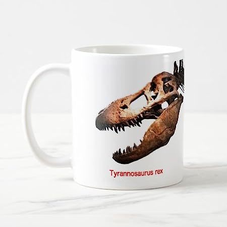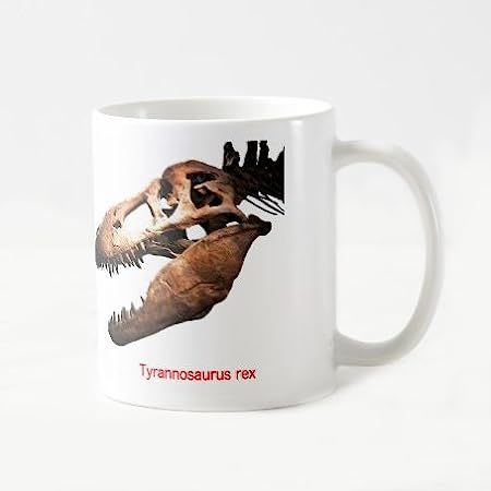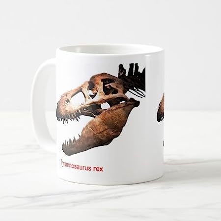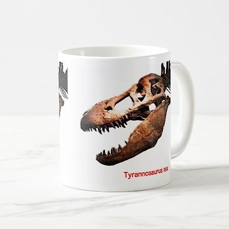 最も有名な 肉食恐竜、ティラノサウルス・レックスの骨格 を、高度な特殊加工で焼き付けたマグカップ:フォトマグです(日本国内の工場で美しく丁寧に焼き付け加工しています)。なお、骨格ではなく、黒いシルエット・バージョンも出品中です。