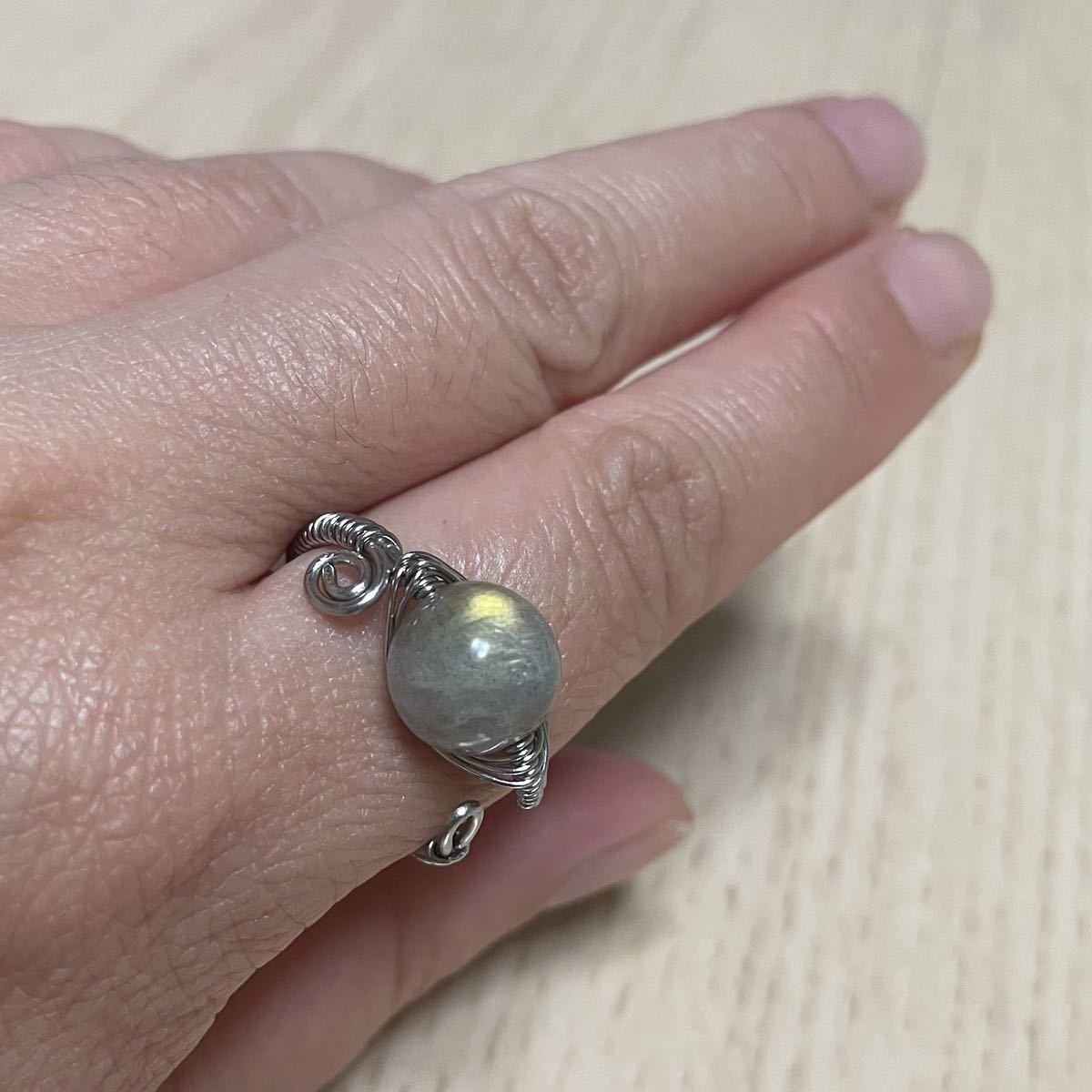 ステンレスワイヤーを使用した天然石ハンドメイドリングです。