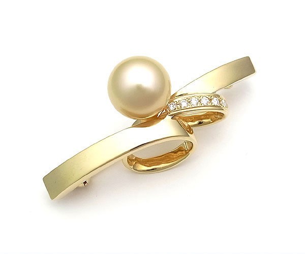 【緑屋質屋】ミキモト ゴールデンパール・ダイヤブローチ 10.5mm K18YG【中古】