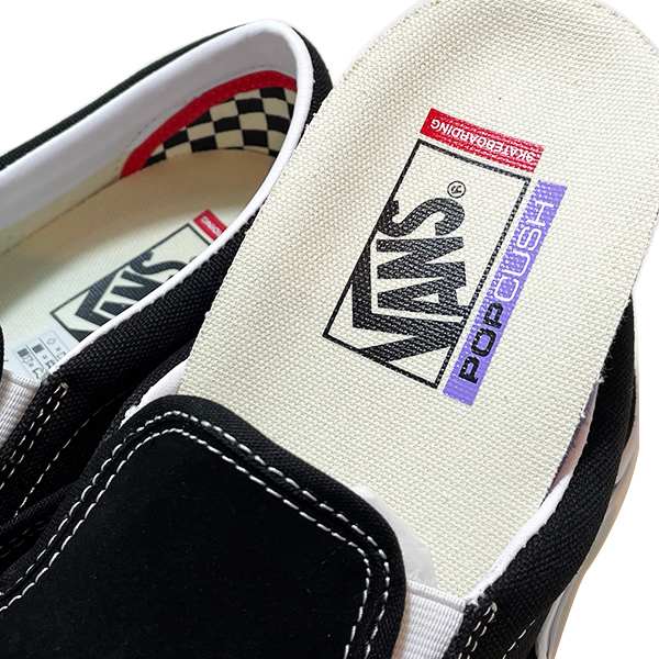 ブランド史上最も粘着性とグリップ性に優れた"SICKSTICK"ラバーを使用し、溝を深くしたアウトソール、衝撃吸収性と反発性を兼ね備えた"POPCUSH"のインソール、下層にラバーを配し耐久性を高めた"DURACAP"採用のアッパー、シュータンとライニングを繋ぎフィット性を高めた構造等の機能面はもちろん、"SKATEBOARDING"の文字等のデザイン面も改めた、スケートカテゴリならではのディテールが詰まったフルリニューアル仕様になっています!!