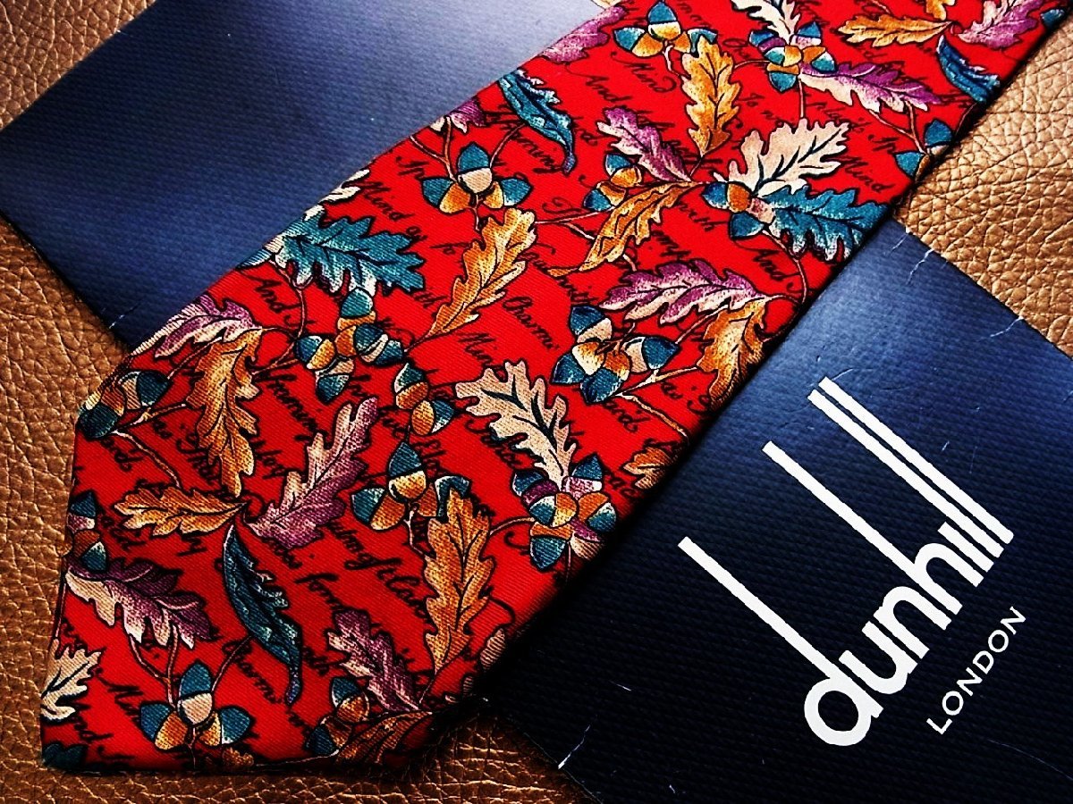 ★良品★3R00168【dunhill】ダンヒル「木の実 葉っぱ 植物 柄」ネクタイ