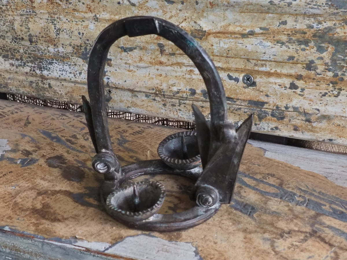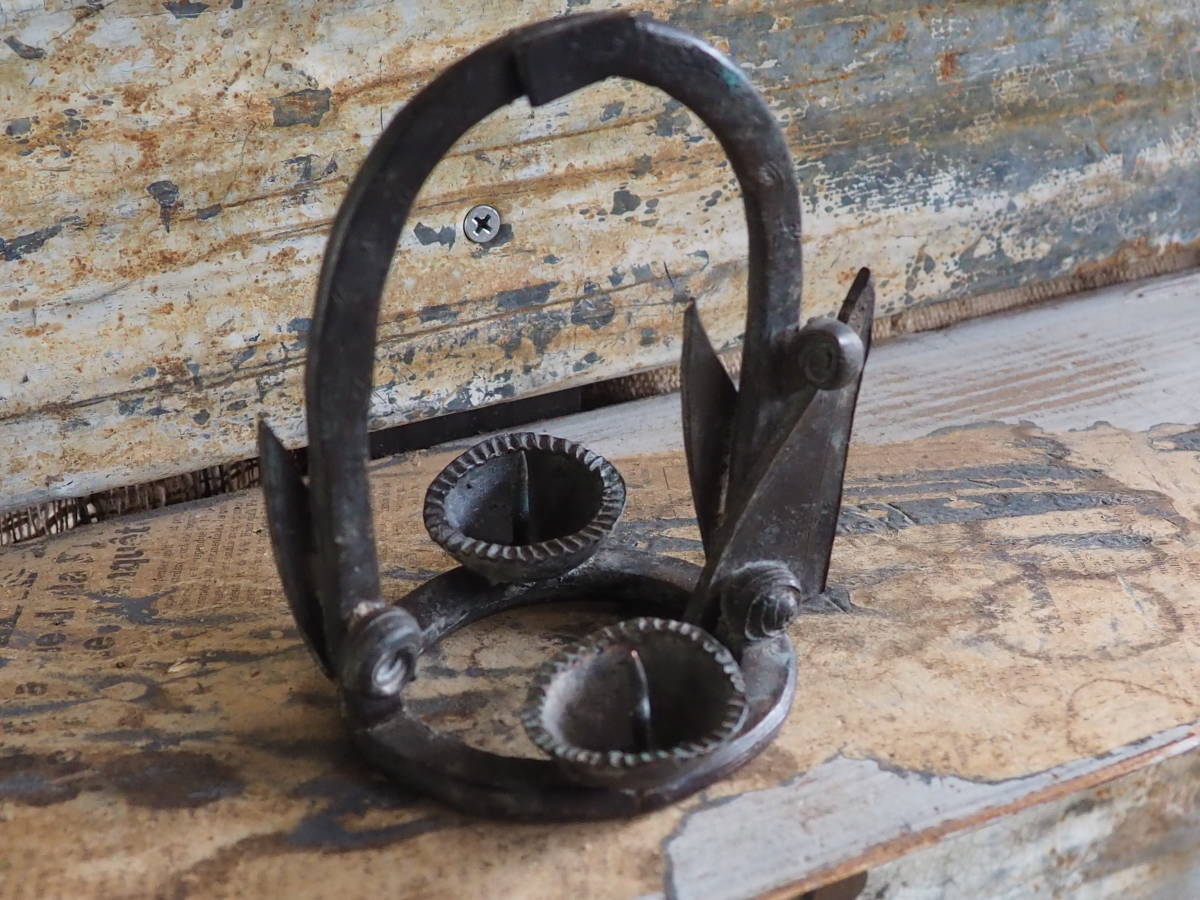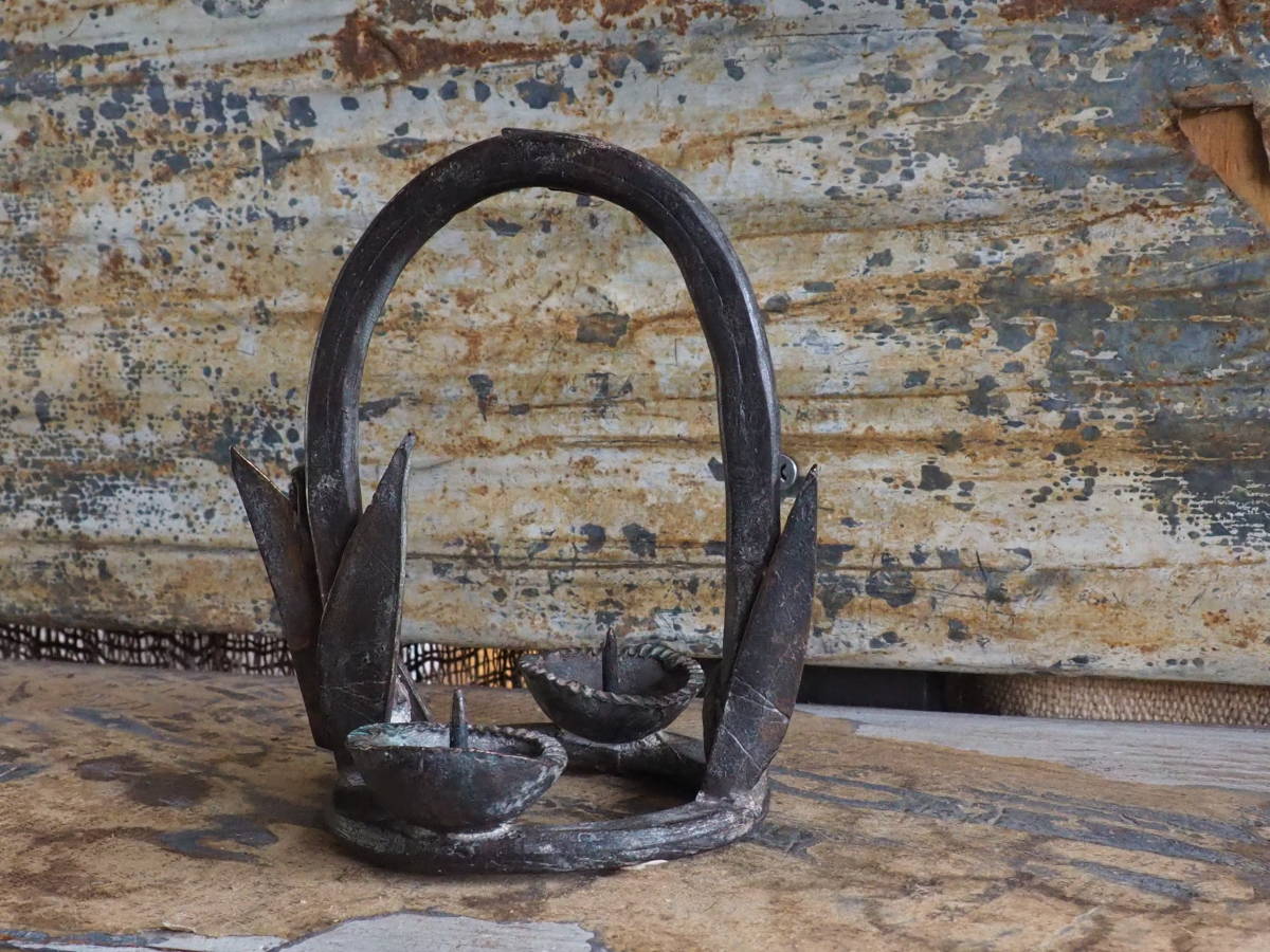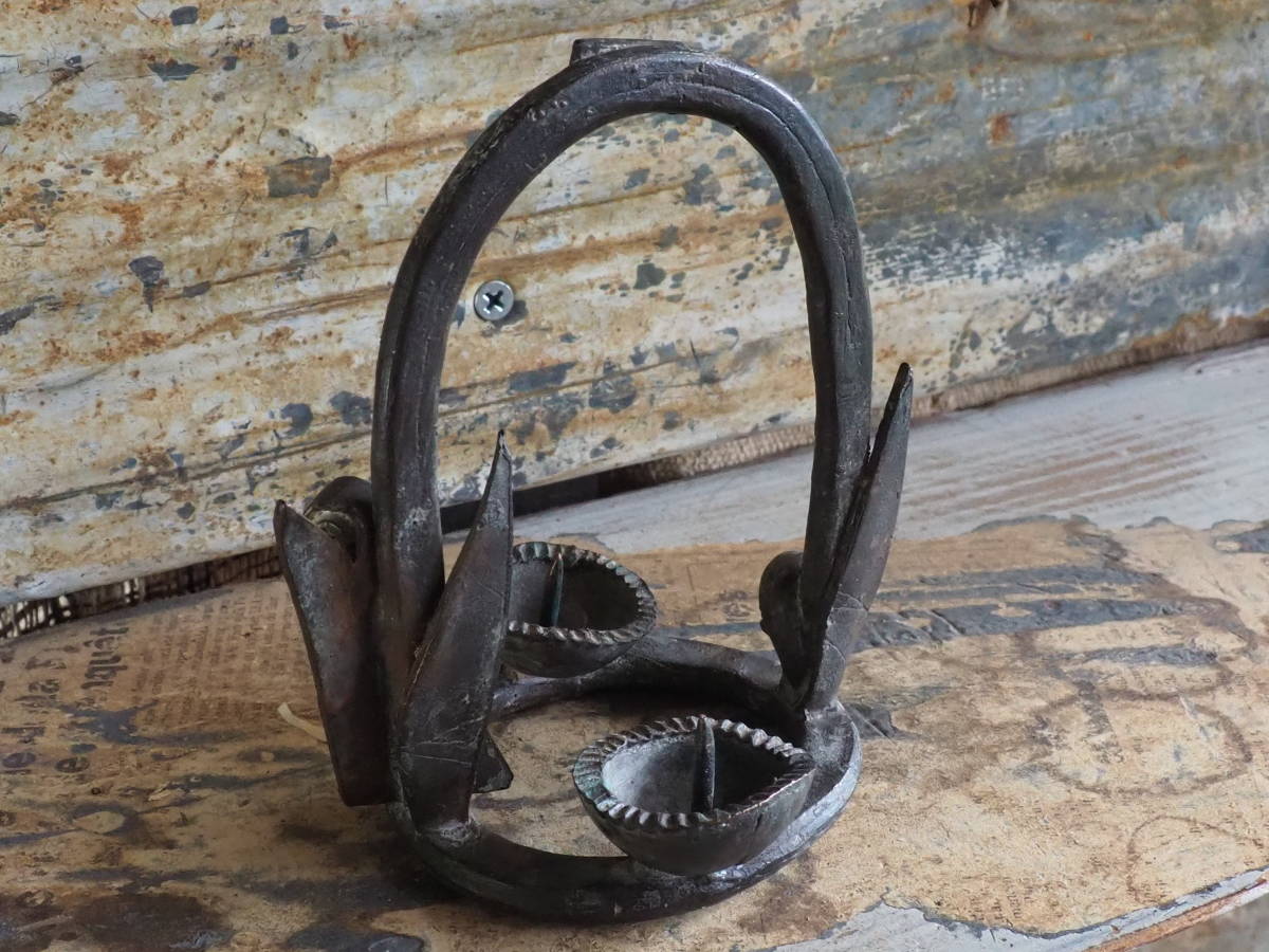 【インドのアイアン燭台】鉄製ロウソク立てキャンドルスタンド古道具アンティーク骨董インテリアランプランタンインダストリアル