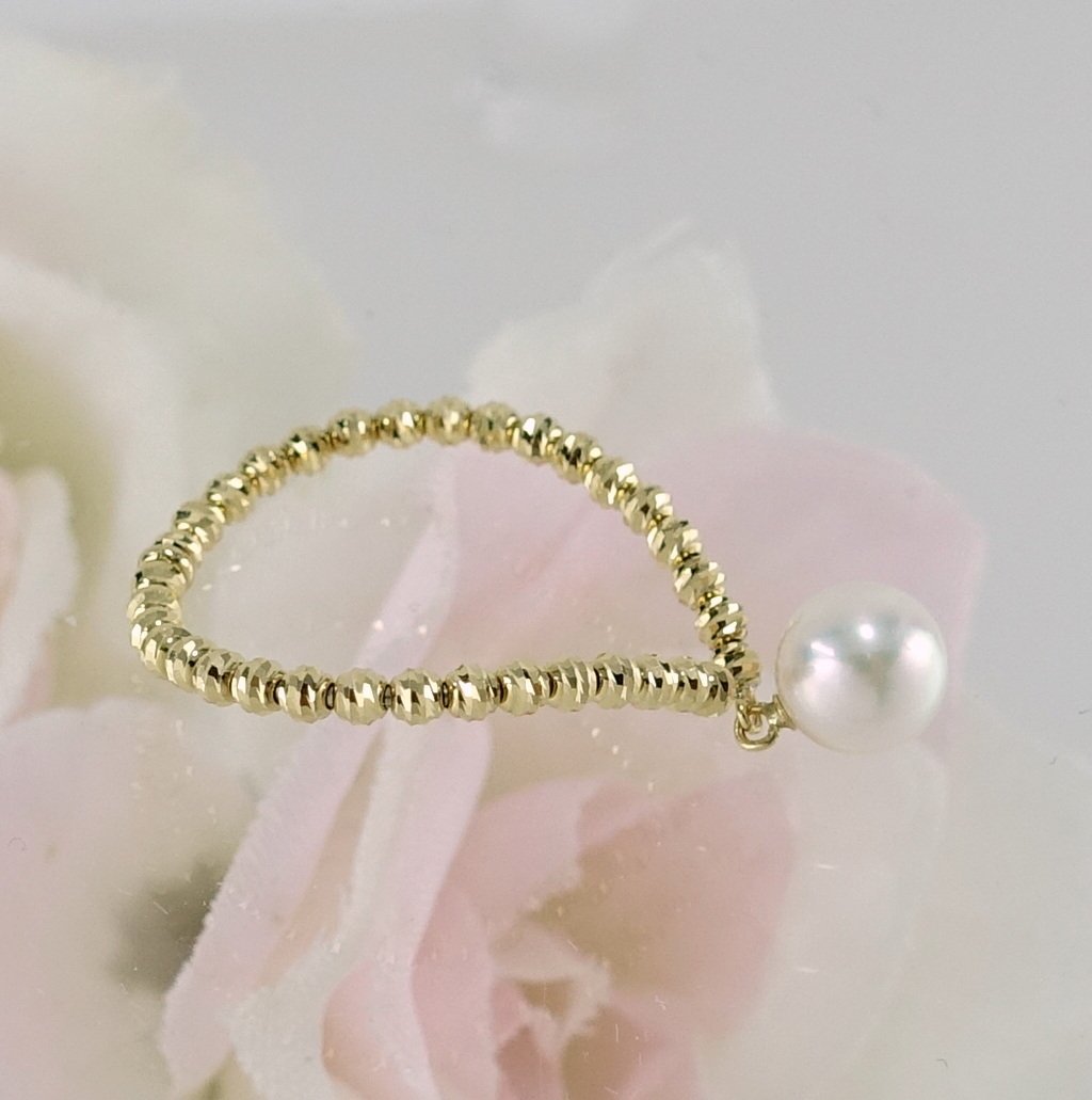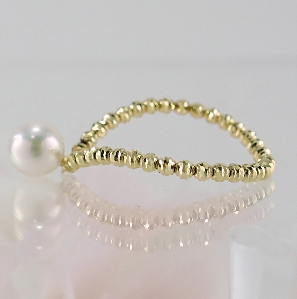 フリーサイズのアコヤ真珠の6mmの付いたリングです。 2.0mmのK18カットボールの中に型くずれしないように芯金にステンレスを使用しています。リングサイズは11~13号まで可能です。 ★商品名 K18アコヤ真珠カットボールリング ★石 種 アコヤ真珠約6.0mm ★サイズ リングサイズ11~13号 リング幅約2.0mm ★重 量 トータルグラム約1.0グラム ★地 金 K18 新品、未使用品です。自然環境で育ったアコヤ真珠ですので 微小なキズが含まれるものもございます。 ★送料込みとなっておりますので、落札いただきました金額のみのお支払いとなります。 | |||