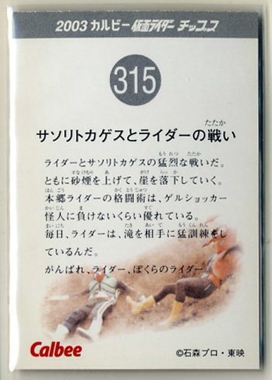 | ◆防水対策 厚紙補強 カルビー 仮面ライダーチップスカード(2003 復刻版) 315番 サソリトカゲスとライダーの戦い トレカ 即決 | |