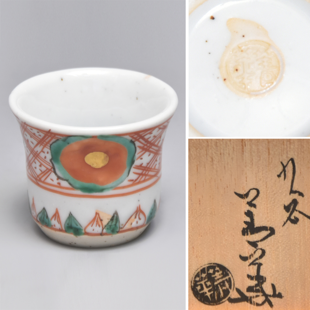 須田菁華(作) 呉須赤絵 赤玉 ぐい呑 盃 共箱 未使用 懐石 酒器 |