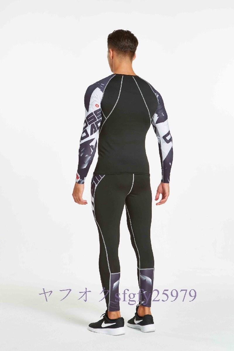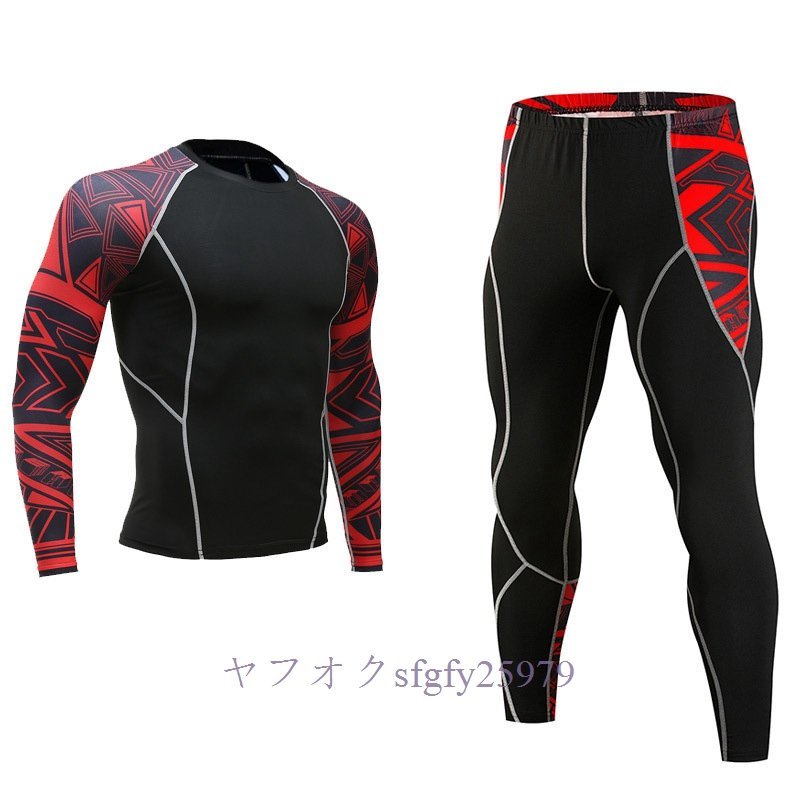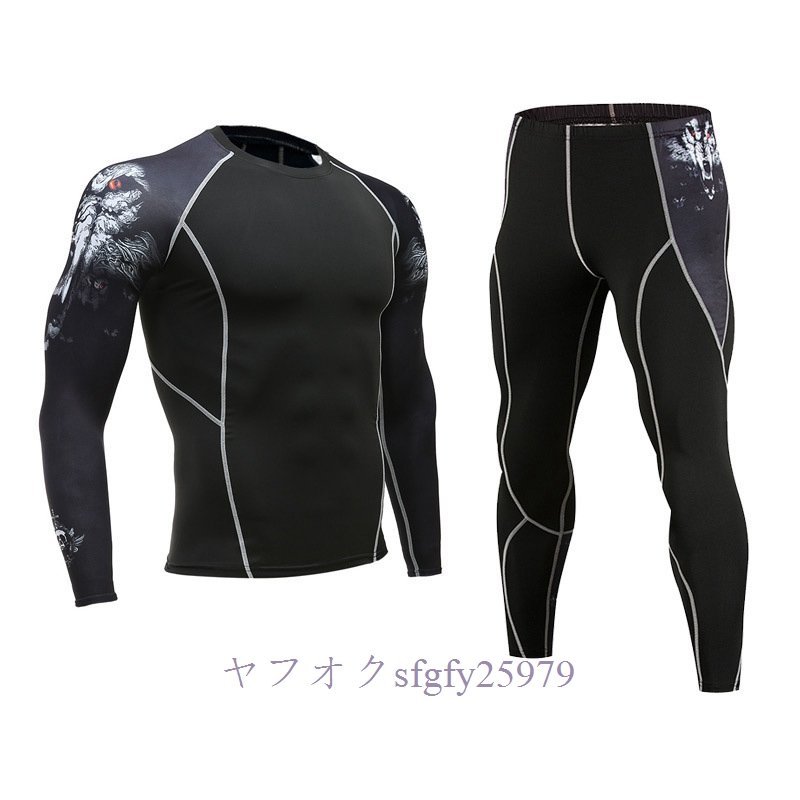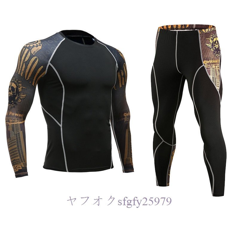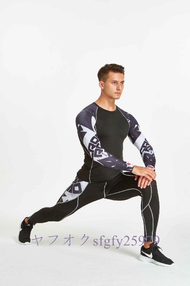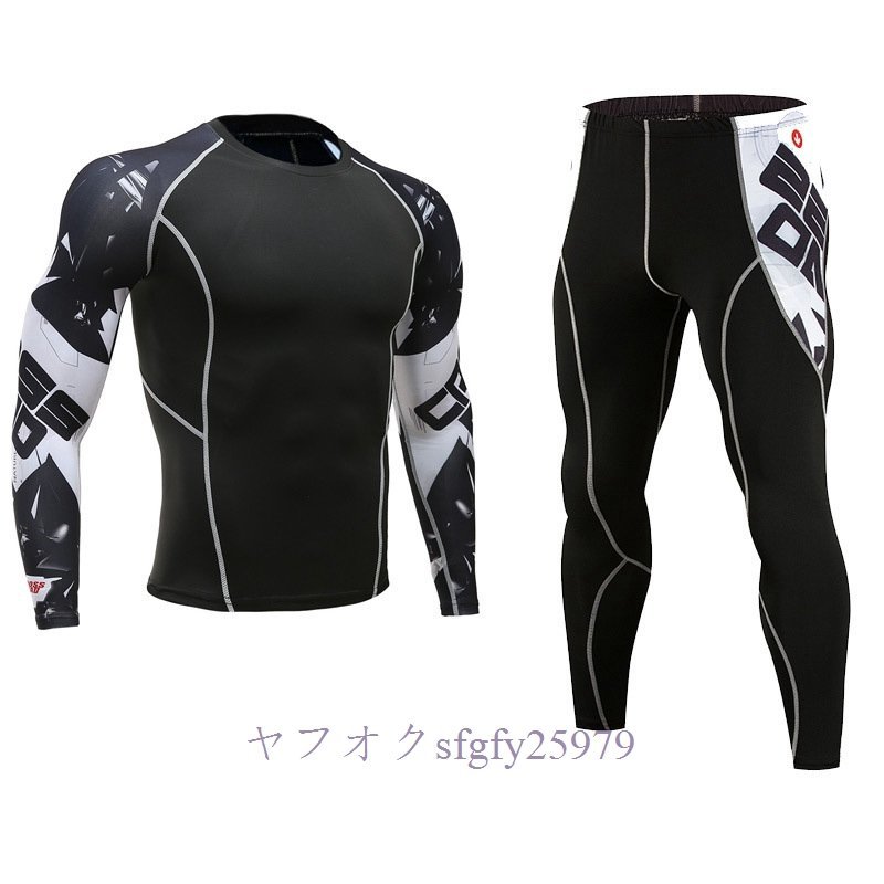 A334I☆新品メンズコンプレッションウェア ジャージ 上下セット加圧インナー フィットネス ロングタイツ アンダーシャツ 速乾通気 弾性 F