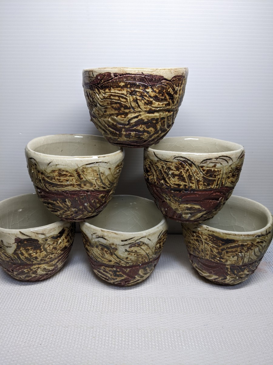 変わり湯呑み ひび入り模様 6客 新品箱無し。 総合評価が95%以下の落札の方と受け取り連絡をされない方は、入札お断り致します。ご了承の上よろしくお願いいたします。