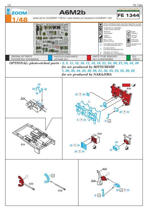エデュアルド ズーム1/48 FE1344 日本海軍 三菱 A6M2b 零式艦上戦闘機 21型 for Academy kits