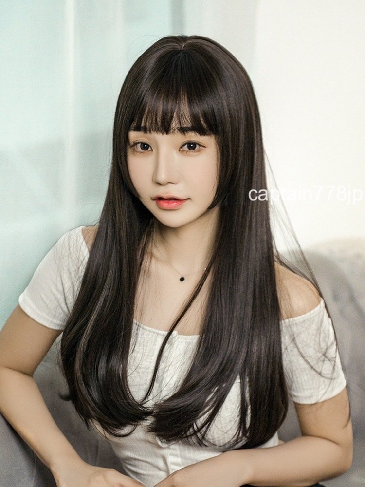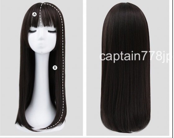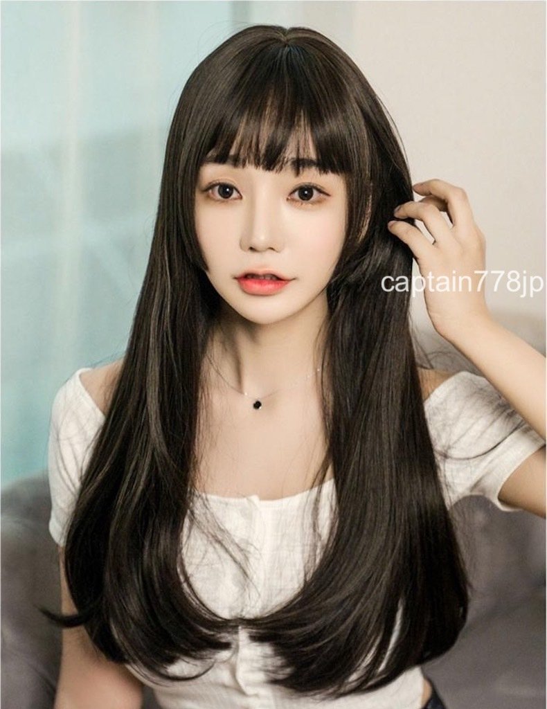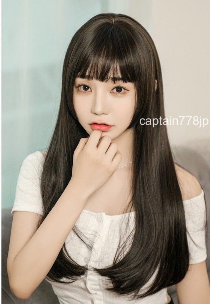 美品登場☆フルウィッグ 姫カットロングストレート 人毛 自然 ブラック