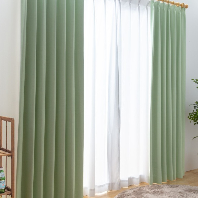 カーテン 幅200cm×丈180cm1枚 ライトグリーン 完全遮光 遮光1級 省エネ 遮音 遮熱 断熱 保温 日本製 形状記憶加工付 246サイズ展開