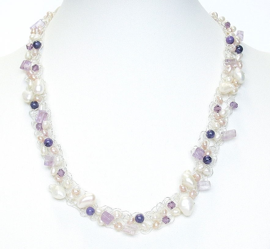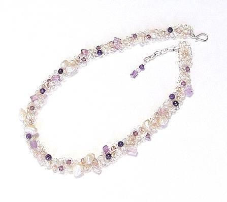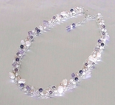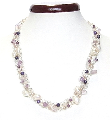 ★ハンドメイド★1点もの★ホワイトパール・アメジストの純銀シルバー編込ネックレス | |||