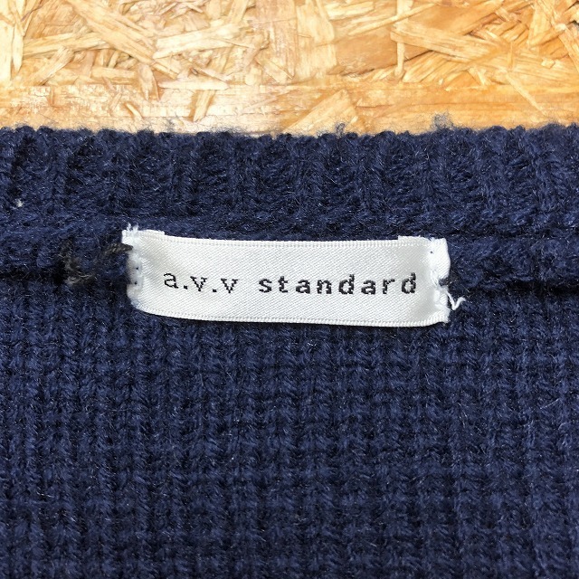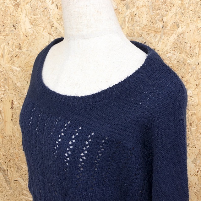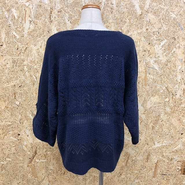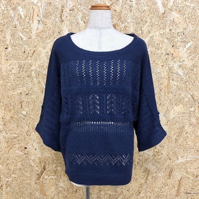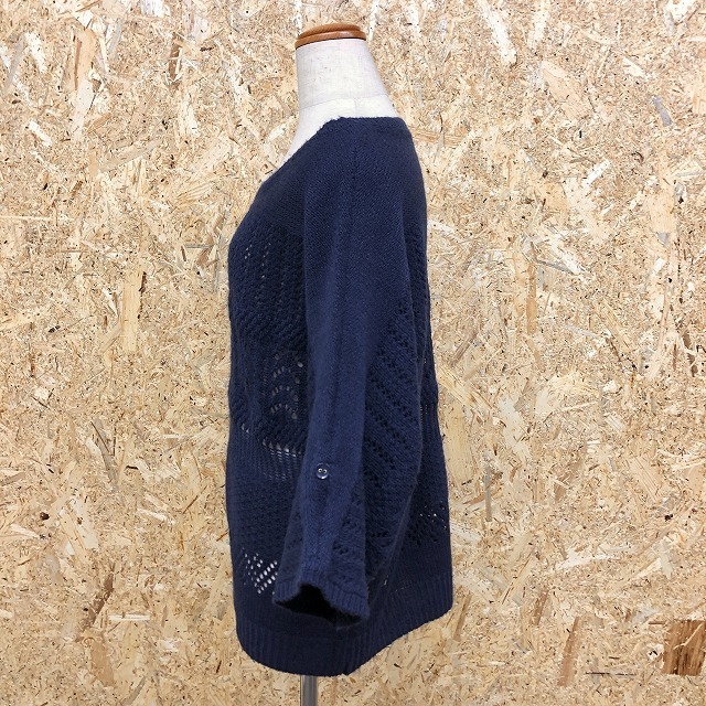| 商品タイトル | a.v.v standard アーヴェヴェ - レディース パンチングニット セーター ロールアップスリーブ ラウンドネック 7分袖 - ネイビー 紺 |