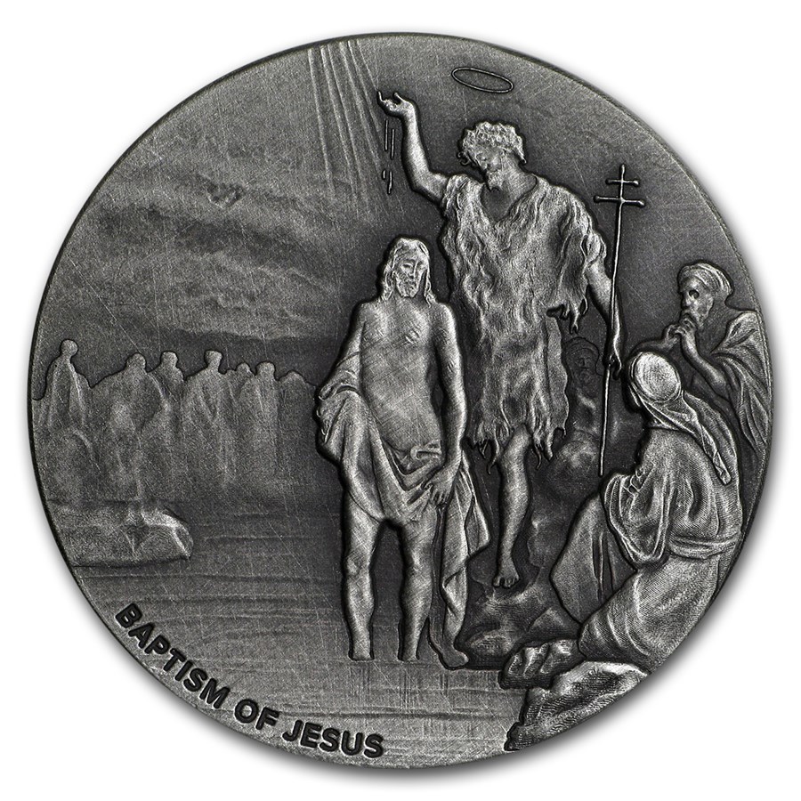 商品名 : 2017年 (新品) ニウエ「聖書シリーズ・イエスキリストのバプテスマ」純銀 2オンス アンティーク 銀貨