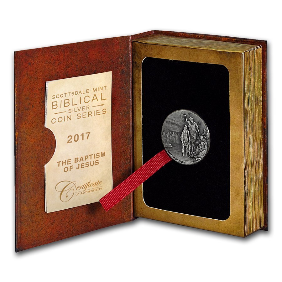 [保証書付き] 2017年 (新品) ニウエ「聖書シリーズ・イエスキリストのバプテスマ」純銀 2オンス アンティーク 銀貨