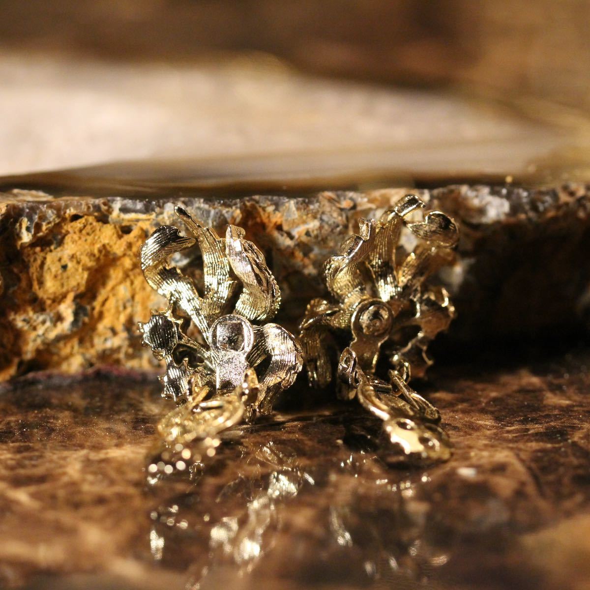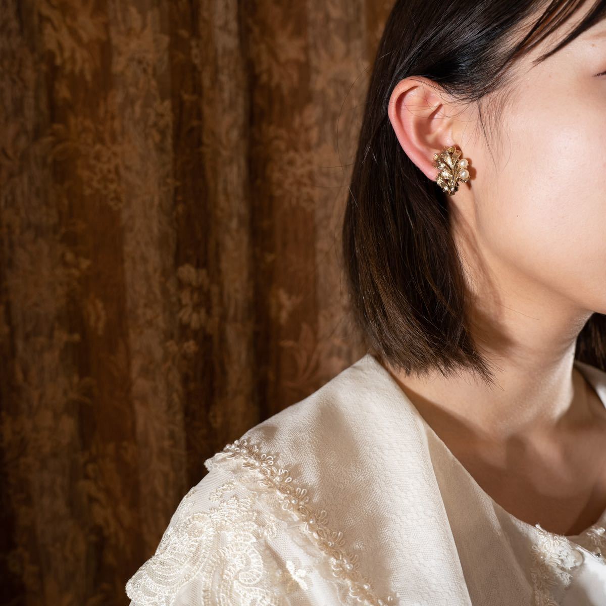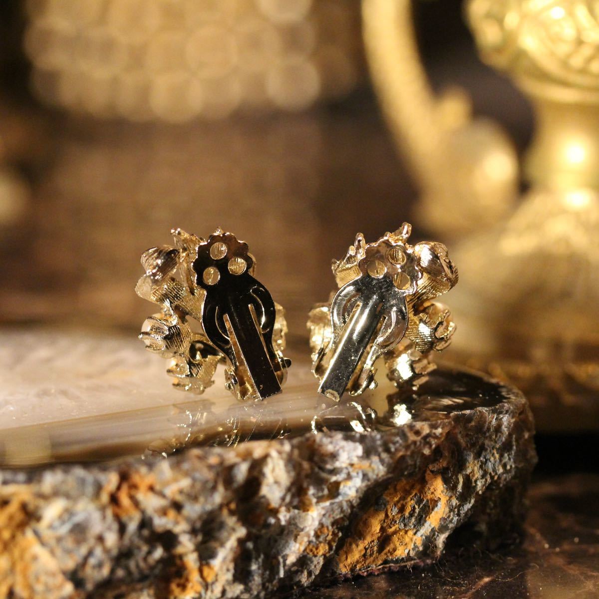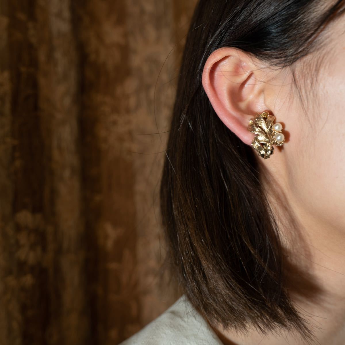 USA VINTAGE PEARL STONE LEAF DESIGN EAR CLIPS/アメリカ古着パールストーン葉っぱデザインイヤリング