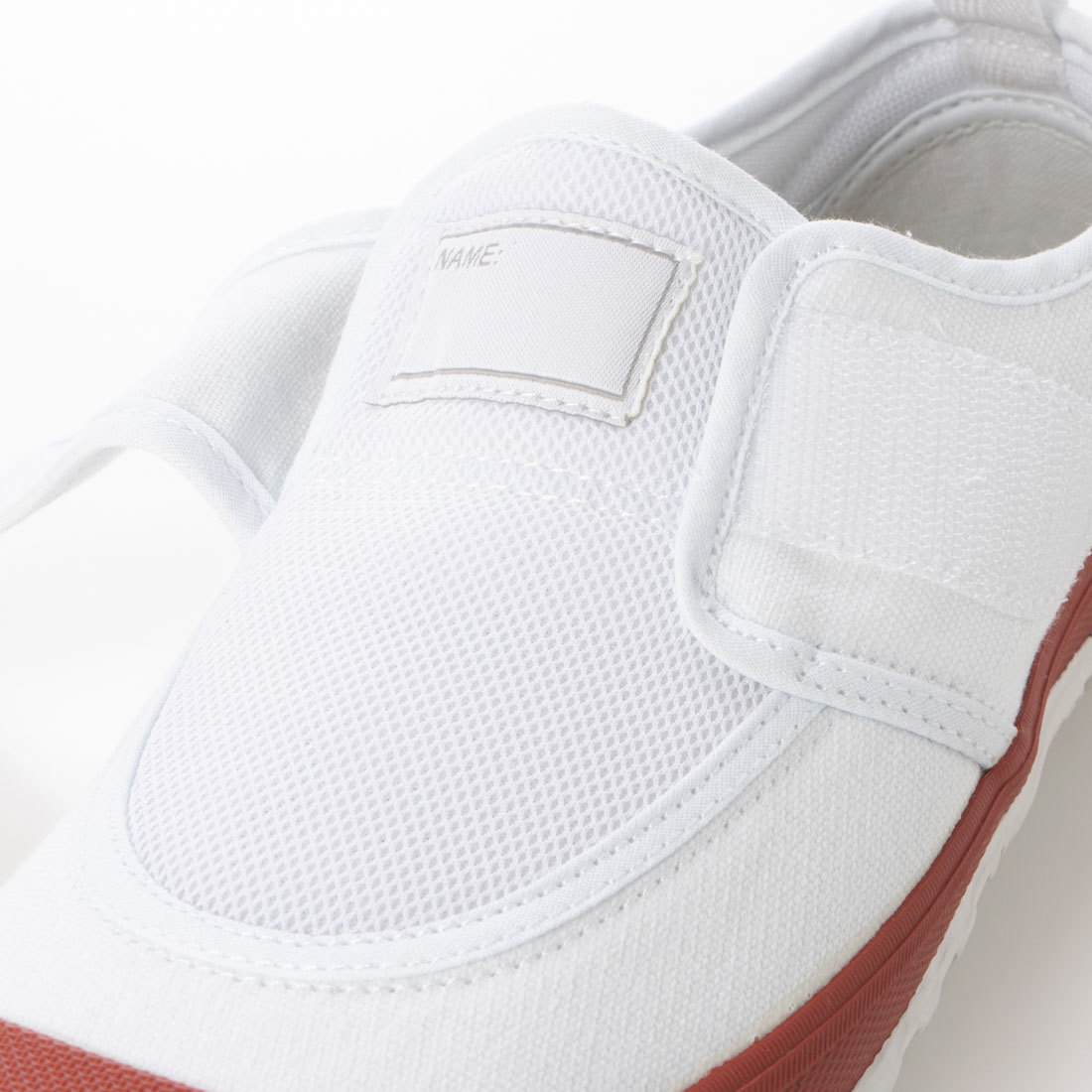 ・マジックテープタイプ、メッシュ素材の上履き ・中敷きに通気穴を加工&抗菌防臭加工 ・つま先部分は幅広設計 ・マジックテープ下に名前記入タグ付き カラー:レッド サイズ:23.0cm 素材:キャンバス素材+メッシュ 靴底:合成ゴム 中敷き:合成繊維カップインソール サイズ感:知り合いのお子さんに試し履きを依頼しました。 普段履いている上履きがブイゴムタイプで 同じサイズを履いてもらうと履き口がちょっと狭く感じ、 履いた後は幅広の為、靴の中での遊びが多いようです。 子供の足は、成長過程でなかなかピッタリ合うサイズは難しいようです。 サイズ変更の際は、往復送料をお願いする事になるので お客様責任でサイズ選択をお願い致します。 | |||