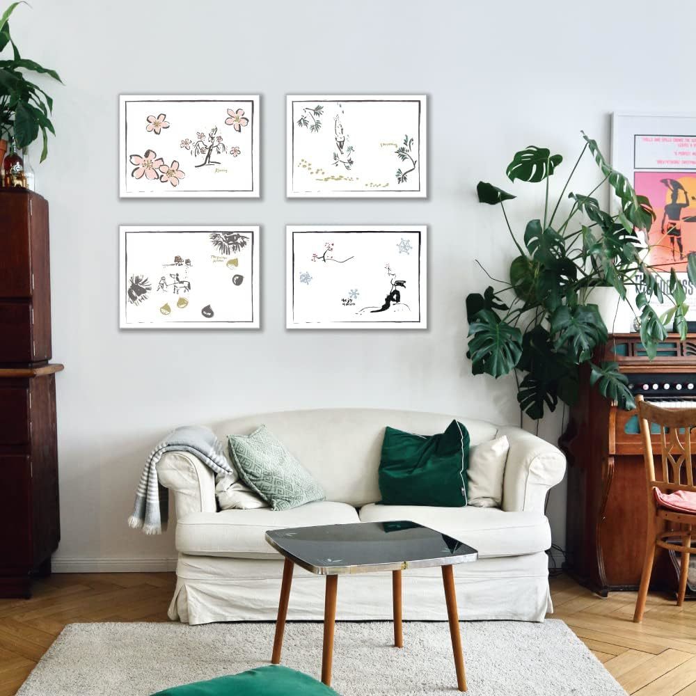 4枚セット 絵画 アートパネル インテリア おしゃれ 壁掛け 北欧 葉 花 四季 植物 自然 軽量 風水 玄関 寝室 部屋 リビング トイレ モダン