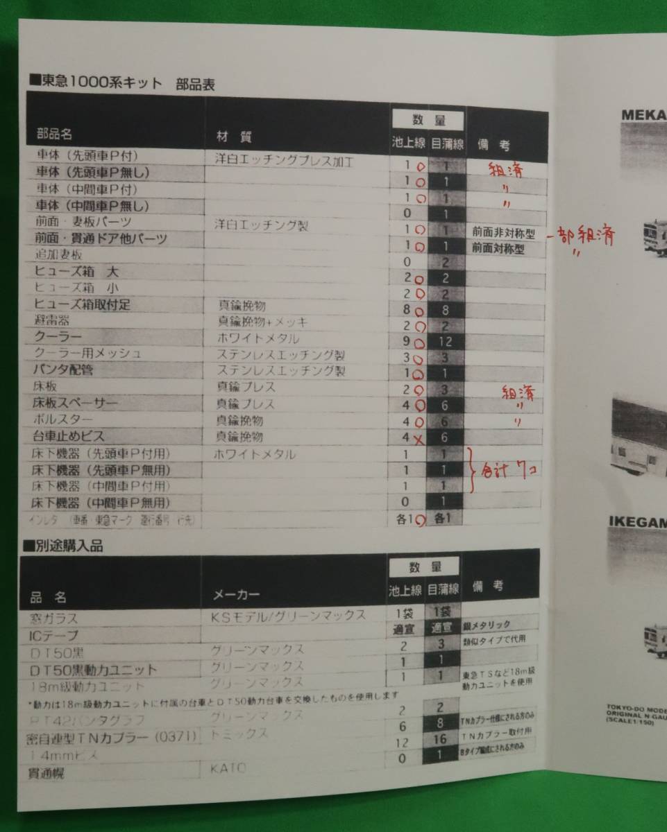 東京堂モデルカンパニー 東京急行電鉄 1000系 1001A 池上線仕様 組立キット 組立途中品です。
