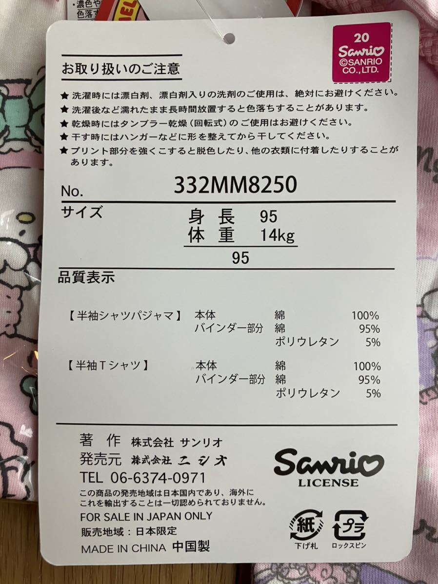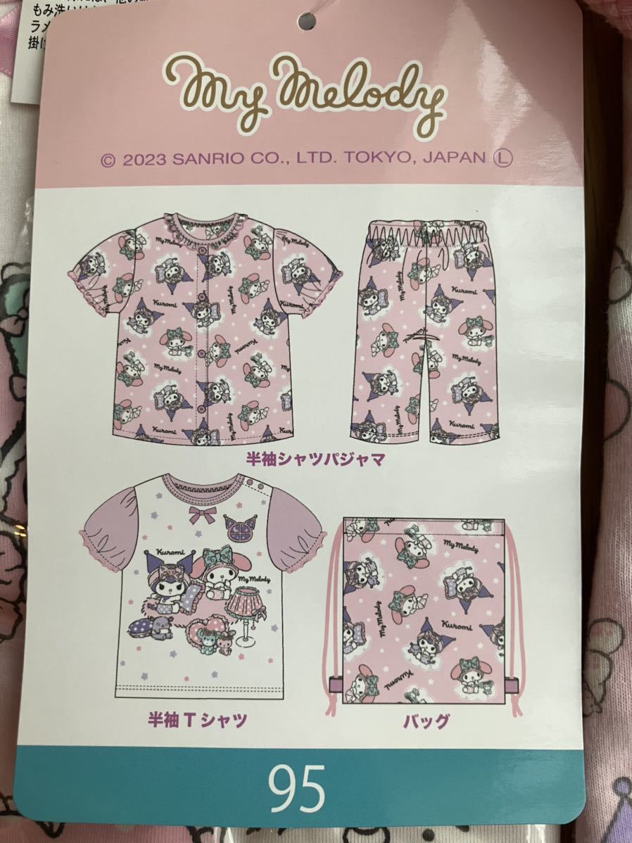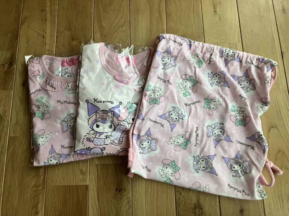 半袖パジャマ上下、半袖Tシャツ、バッグのセットです。