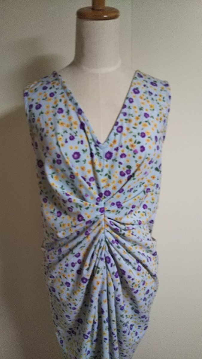 前中心にタックが多く入ったドレープワンピースです