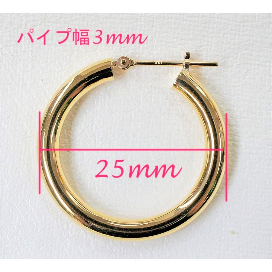 【新品】 K18 パイプ ゴールド フープ ピアス 3×25mm 【送料無料】【輪っか】【両耳】【リングピアス】 | |||
