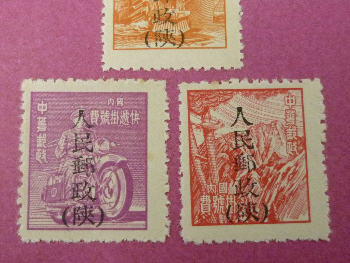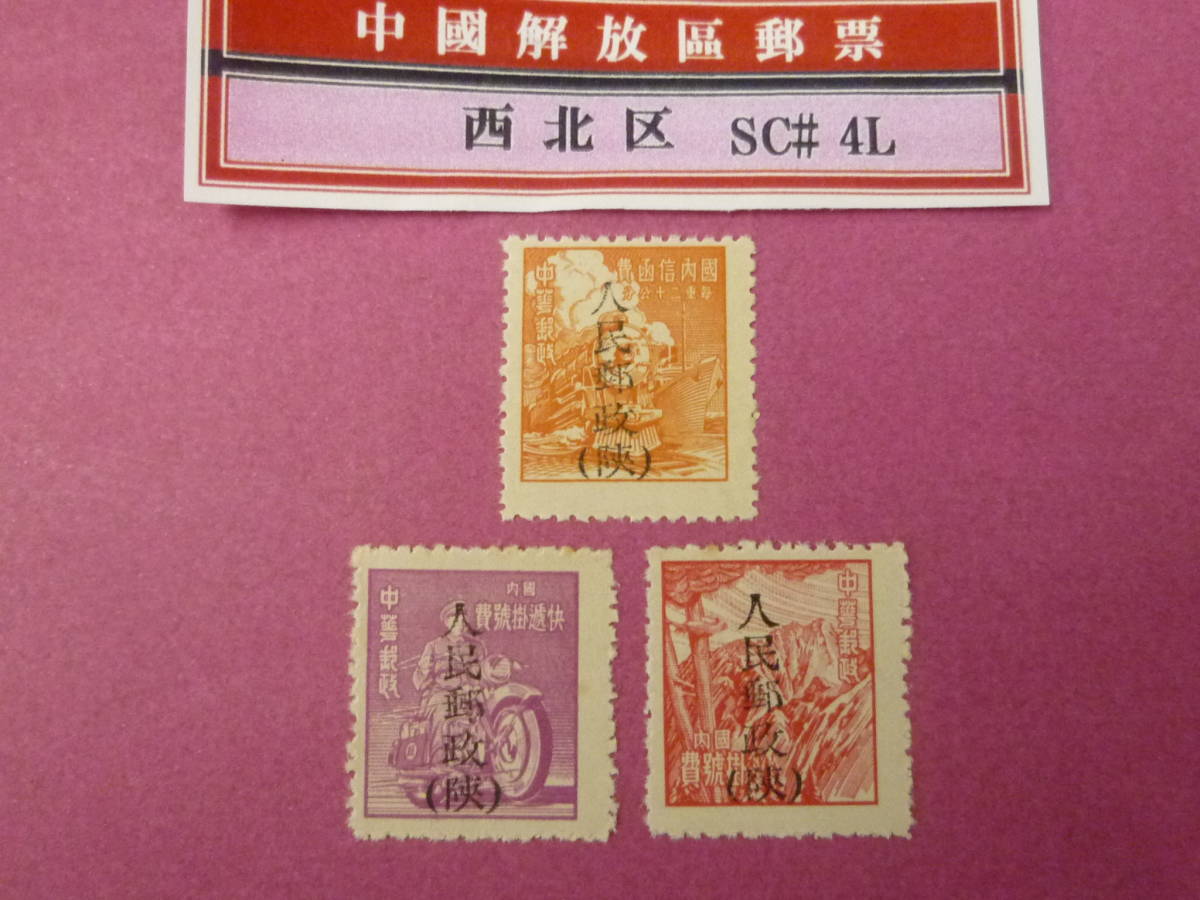 22L A №128 中国解放区切手 西北区 1949年 SC#4L31-33 西安加蓋 単位票 3種完 未使用NH・VF