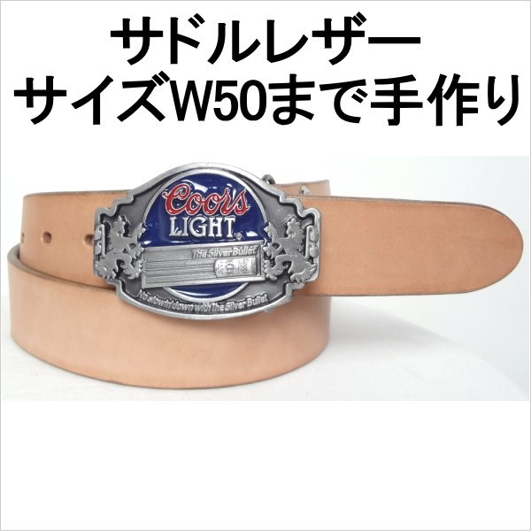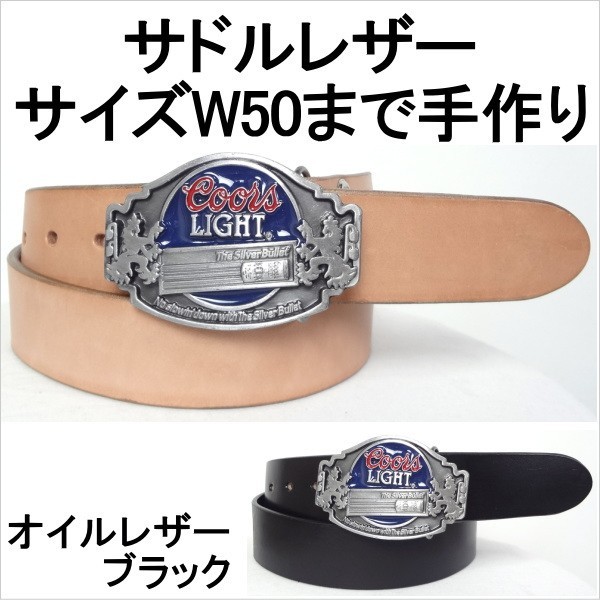 ジーンズ・レザーパンツ(革パン)にはサドルレザー!オイルレザー!当店にてオリジナルで大きいサイズW50インチまで製作します。バックルは Coors Light クアーズライト