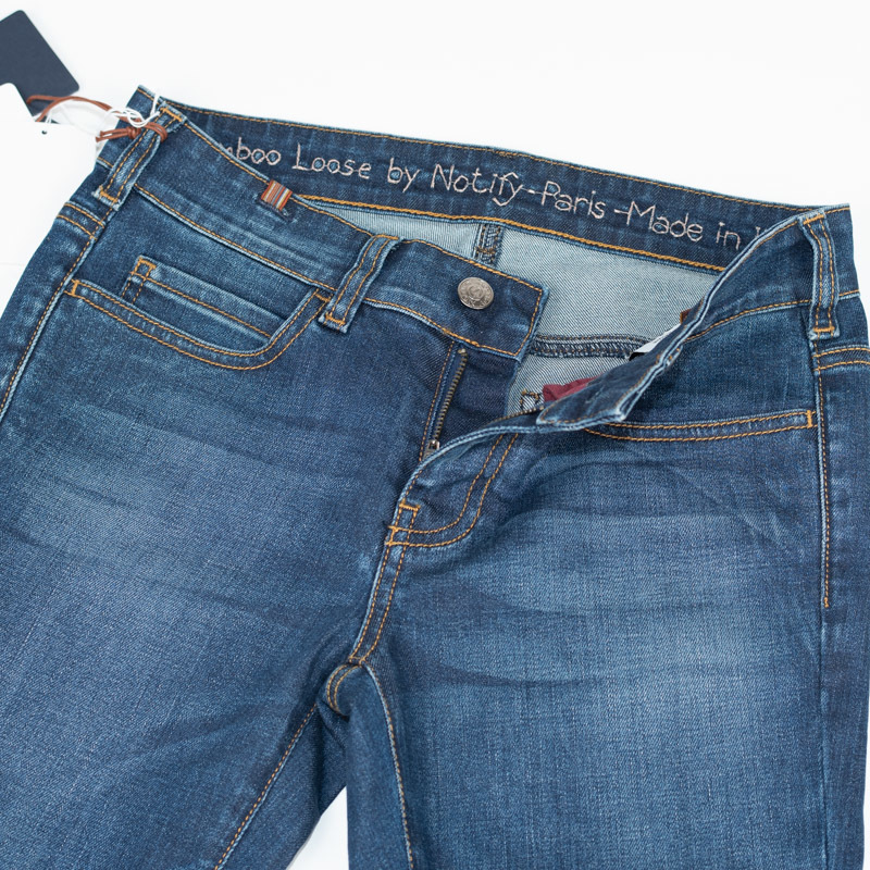 新品未使用 国内正規品 送料無料 Notify | ノティファイ イタリア製 BAMBOO LOOSE ミディアムブルー スリムボーイフレンド レディース デニム 26サイズ | ||||