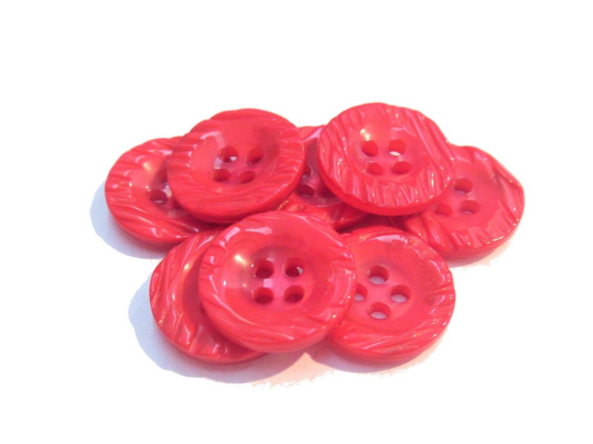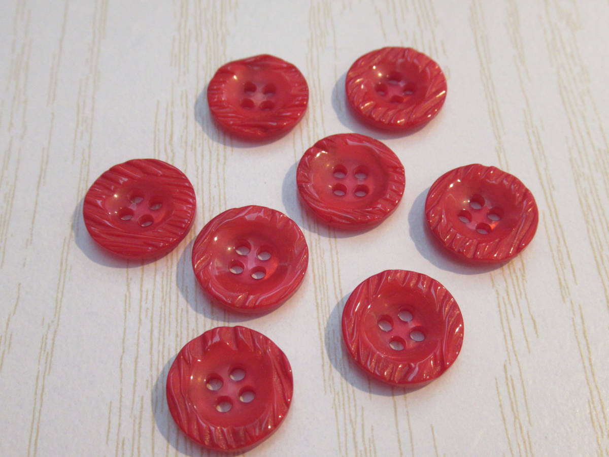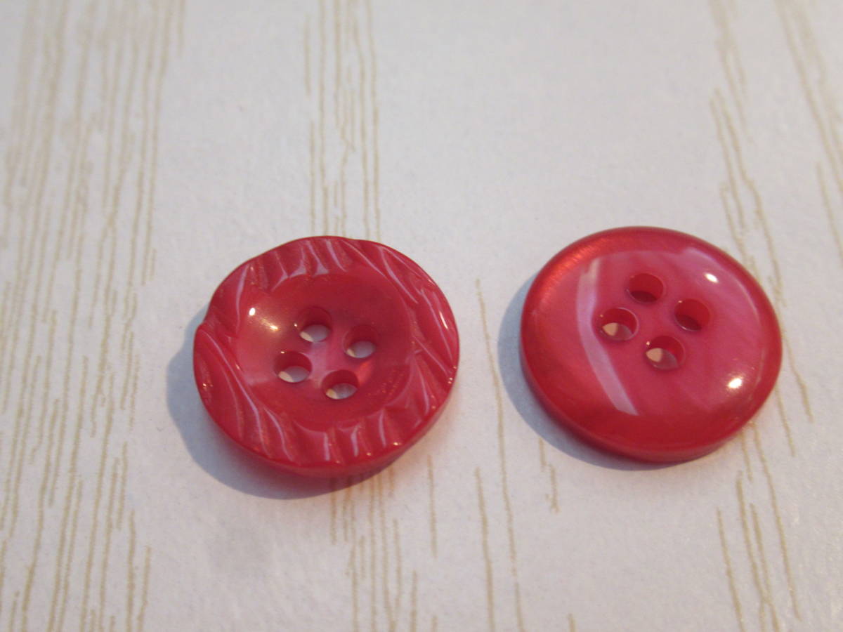 手芸 和洋裁用釦 ボタン 縁有り柄四つ穴ボタン アカ(15mm8個入り)b1201a-ka